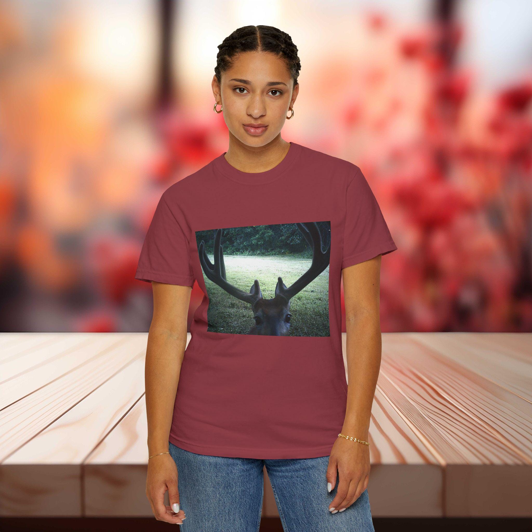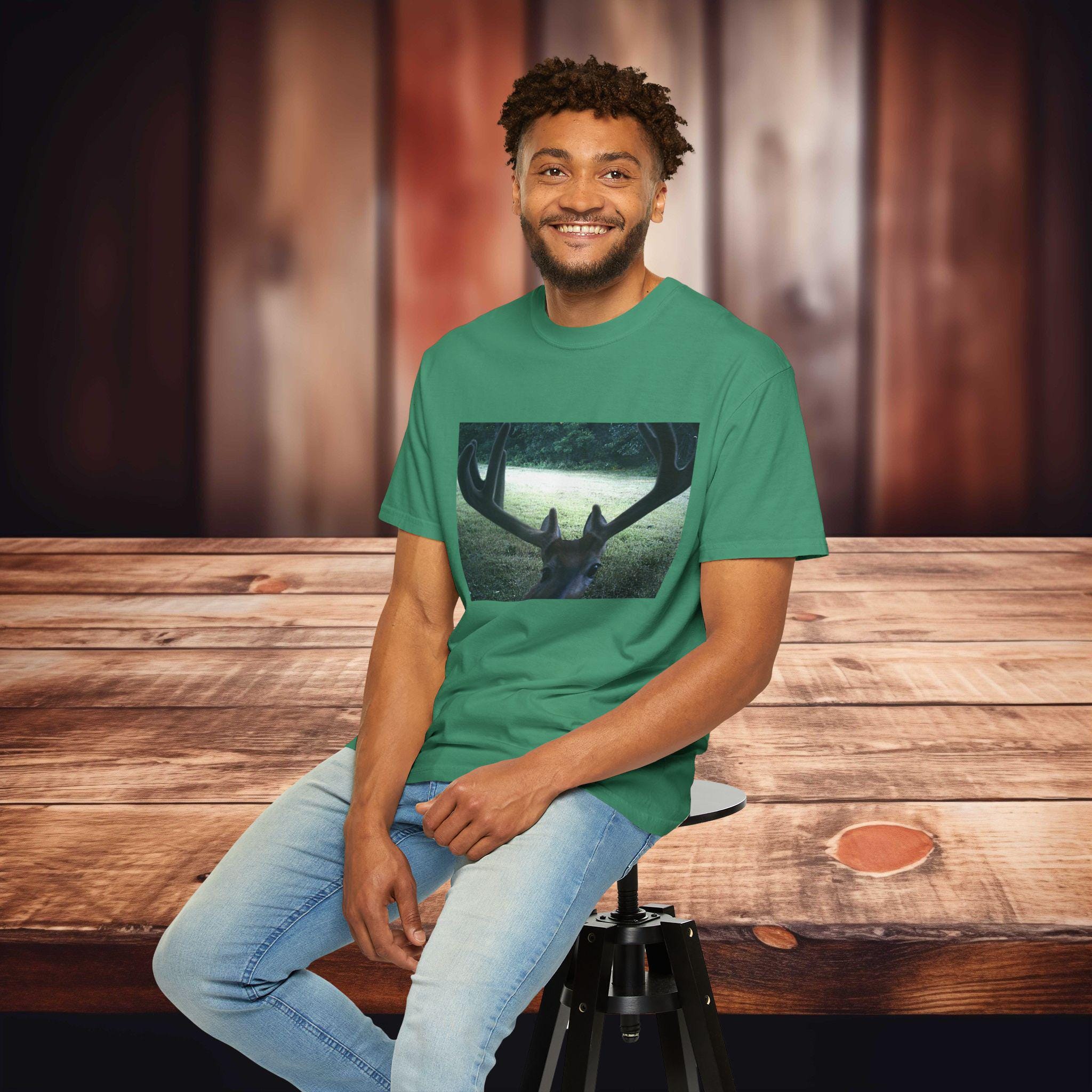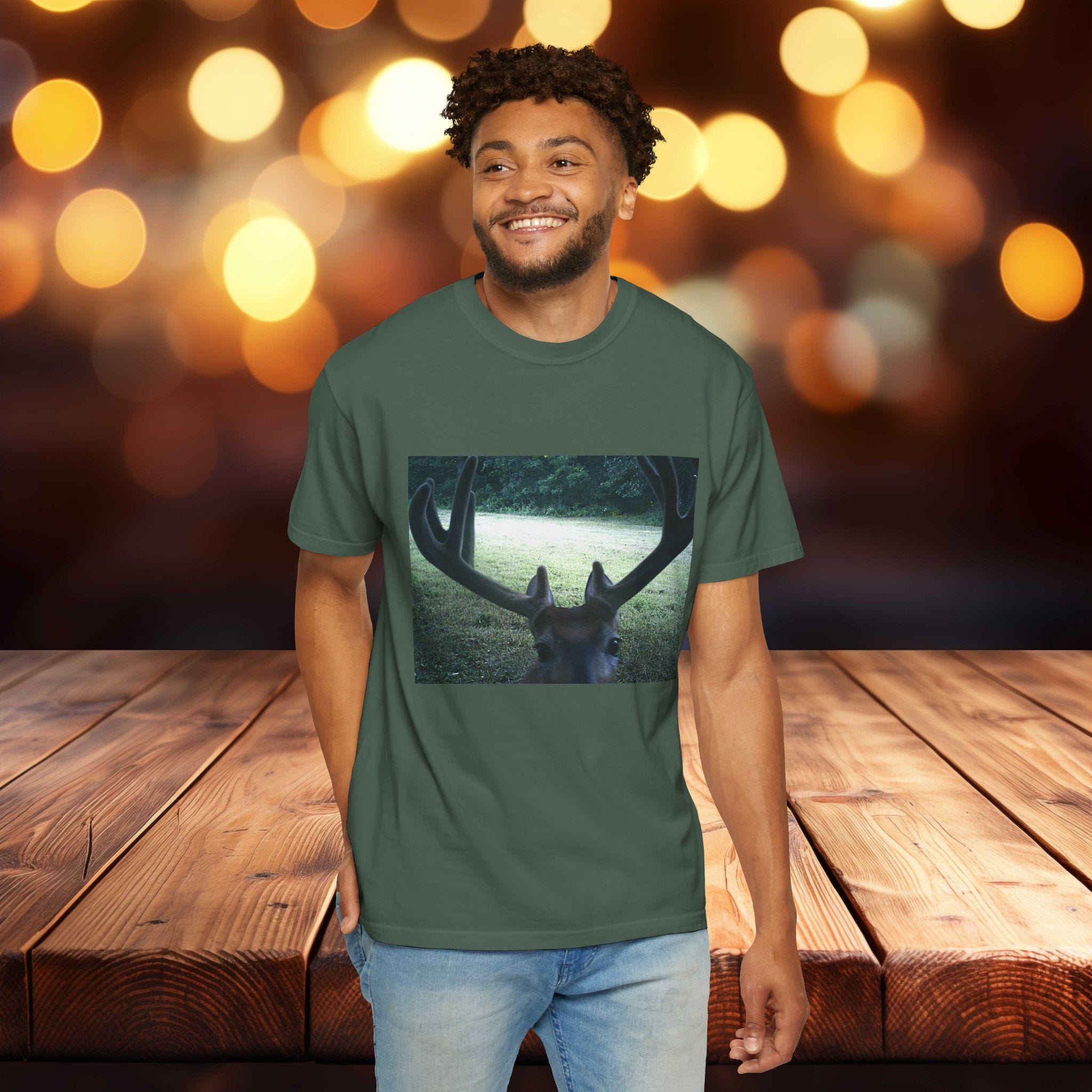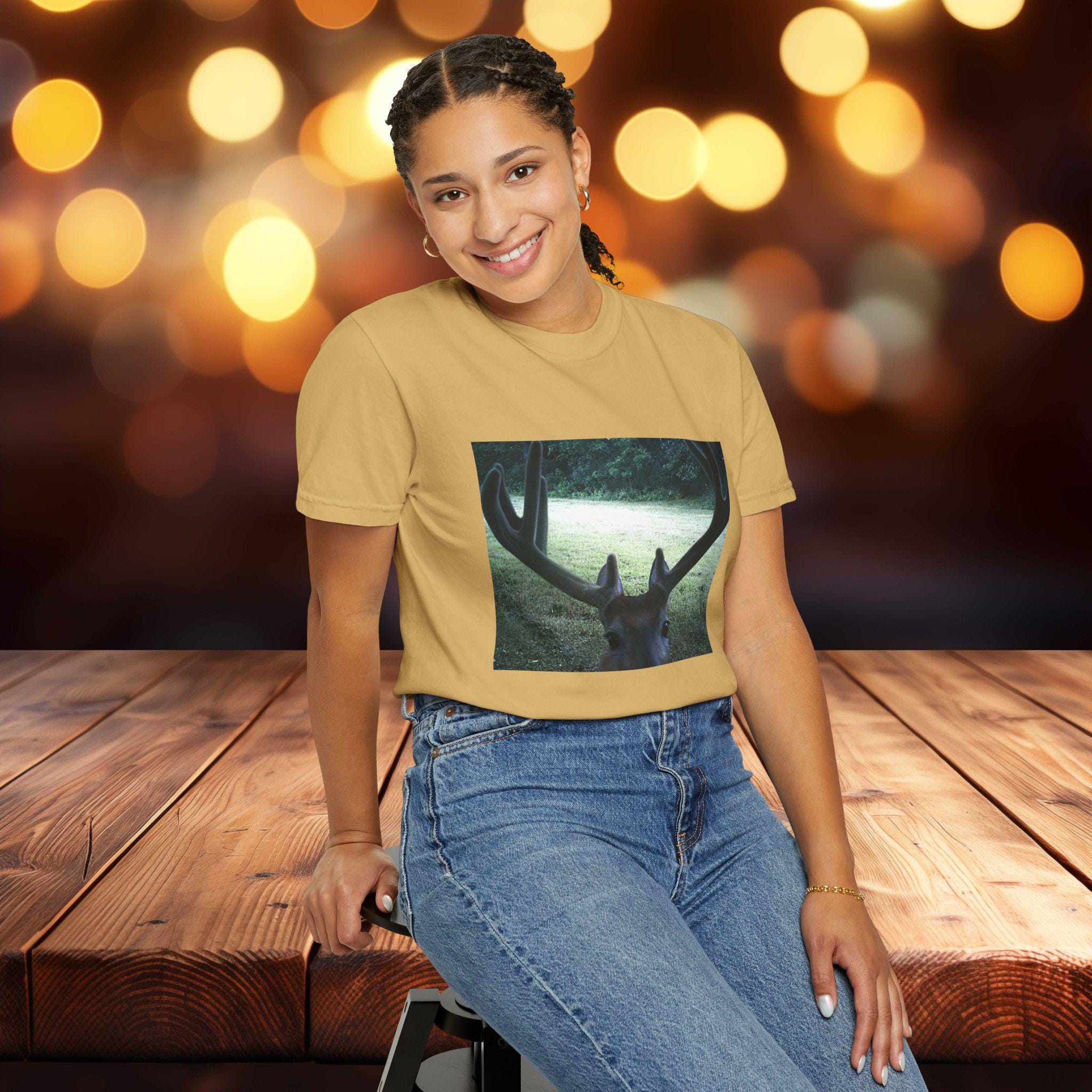 This Deer Selfie Photo T-shirt gives off a fun and playful vibe, perfect for animal lovers and nature enthusiasts. It can be worn casually or dressed up, making it versatile for various occasions. Ideal for those who enjoy celebrating holidays or events with a touch of humor and style.