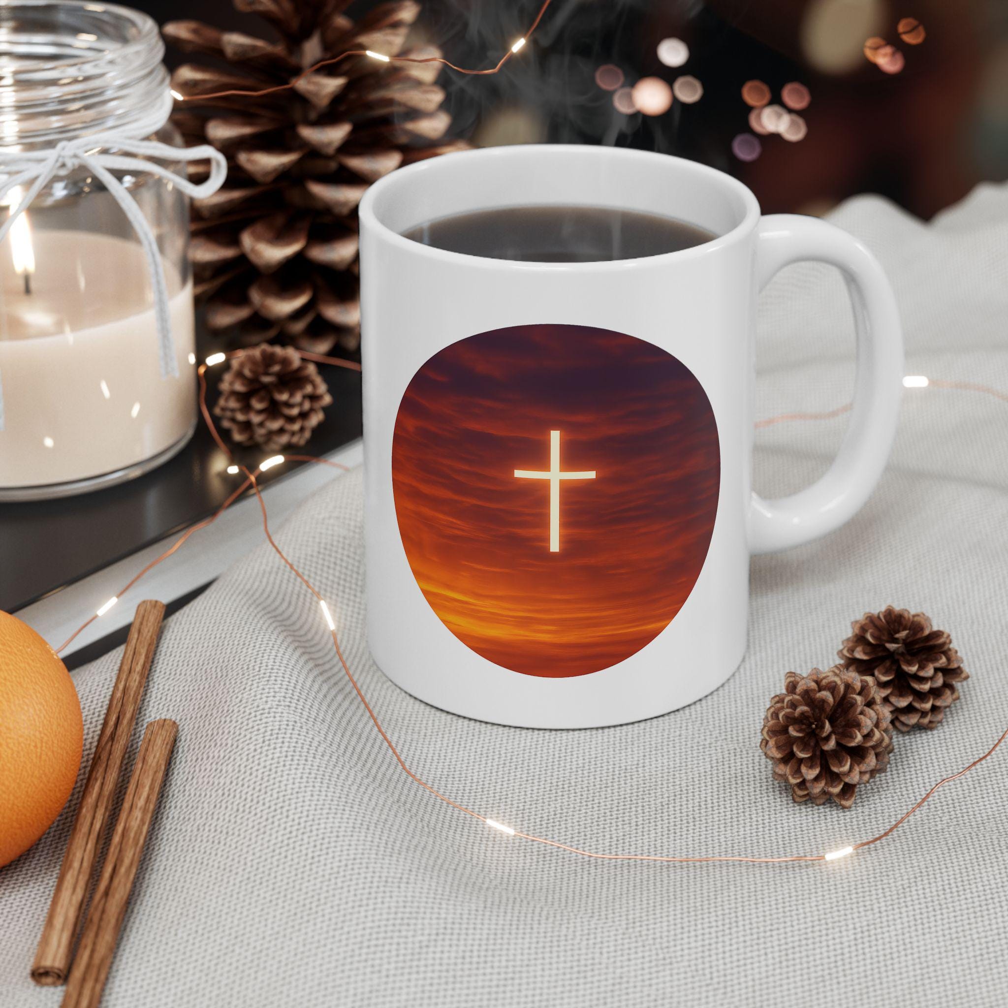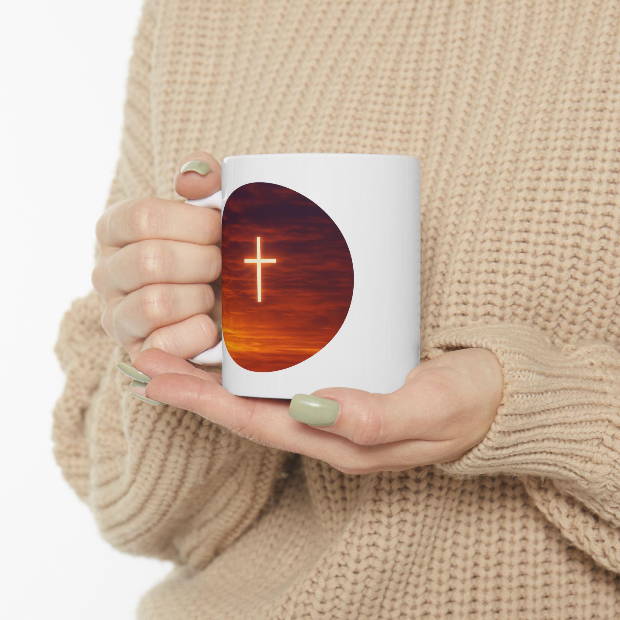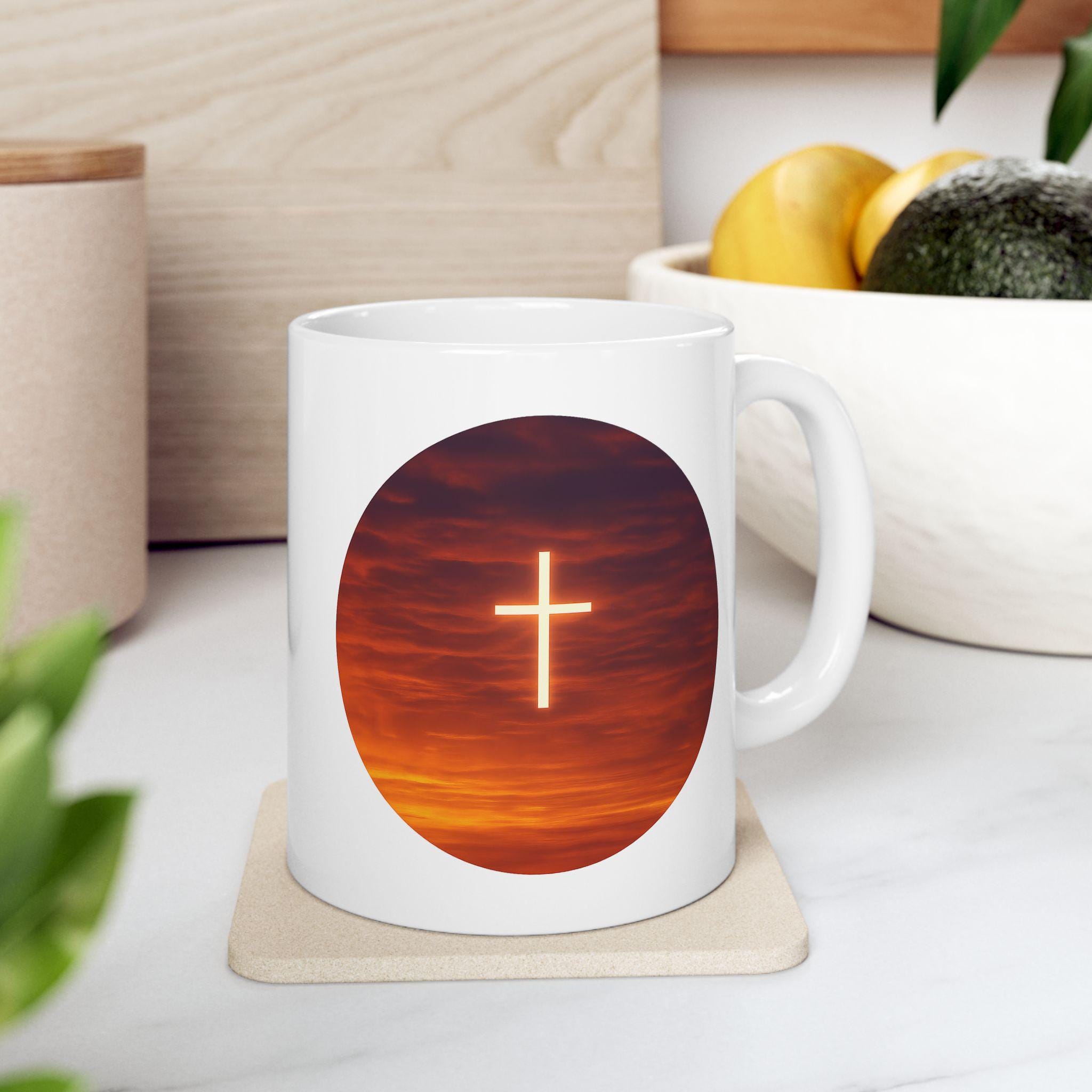 Enjoy your morning coffee or tea with this Christian Sunrise Ceramic Mug featuring a white cross on a sunrise background. This beautiful tea cup makes a religious gift for anyone looking for a peaceful start to their day. Perfect for believers looking to add a touch of faith to their daily routine or as a thoughtful present for holidays like Easter or Christmas.