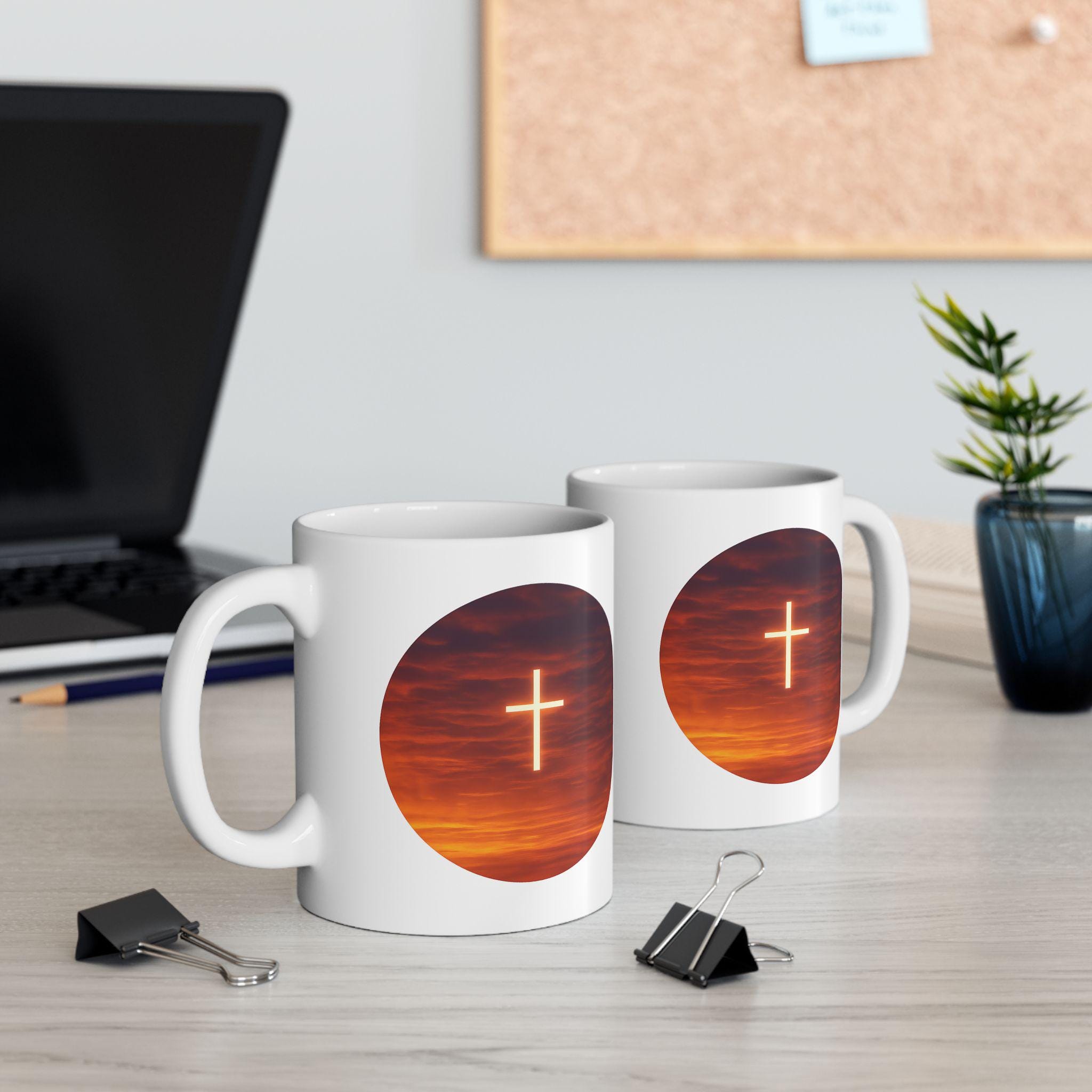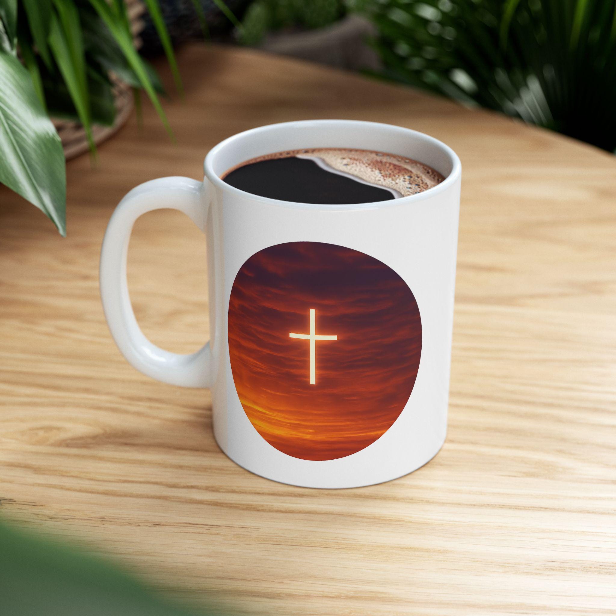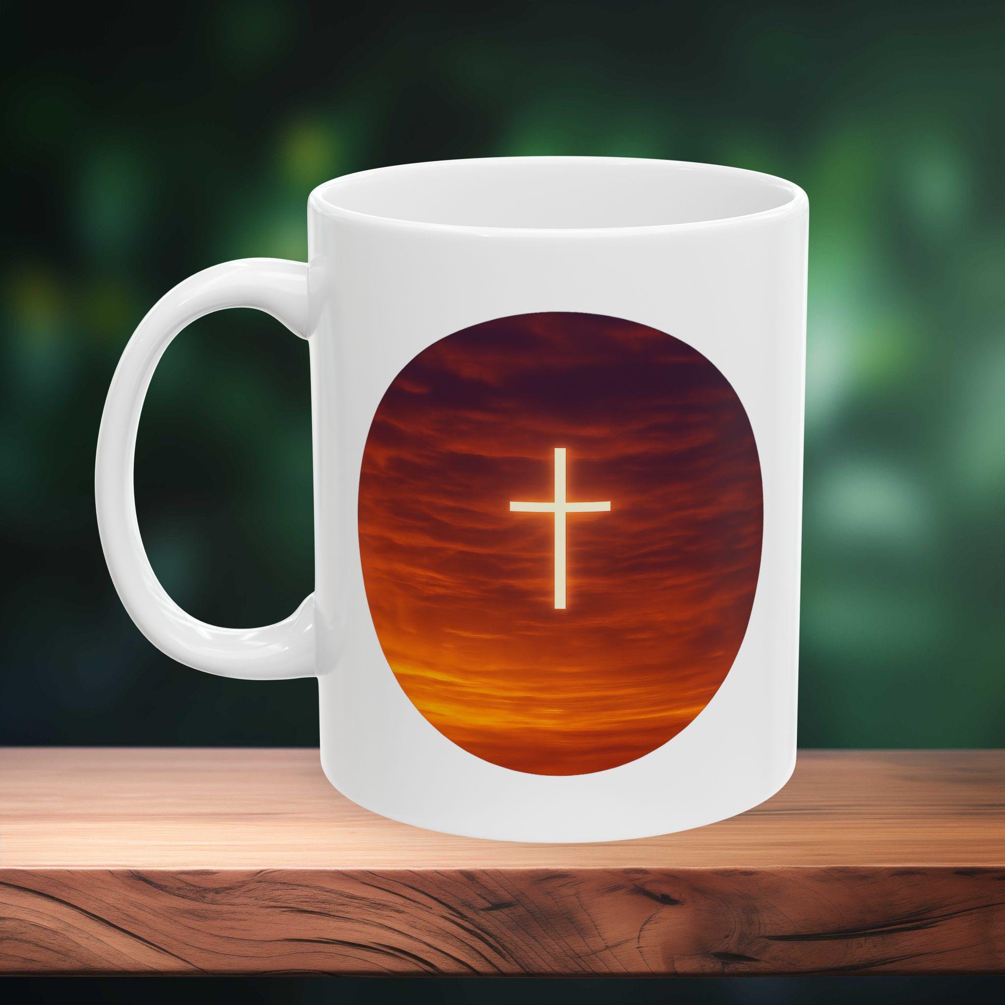 Enjoy your morning coffee or tea with this Christian Sunrise Ceramic Mug featuring a white cross on a sunrise background. This beautiful tea cup makes a religious gift for anyone looking for a peaceful start to their day. Perfect for believers looking to add a touch of faith to their daily routine or as a thoughtful present for holidays like Easter or Christmas.