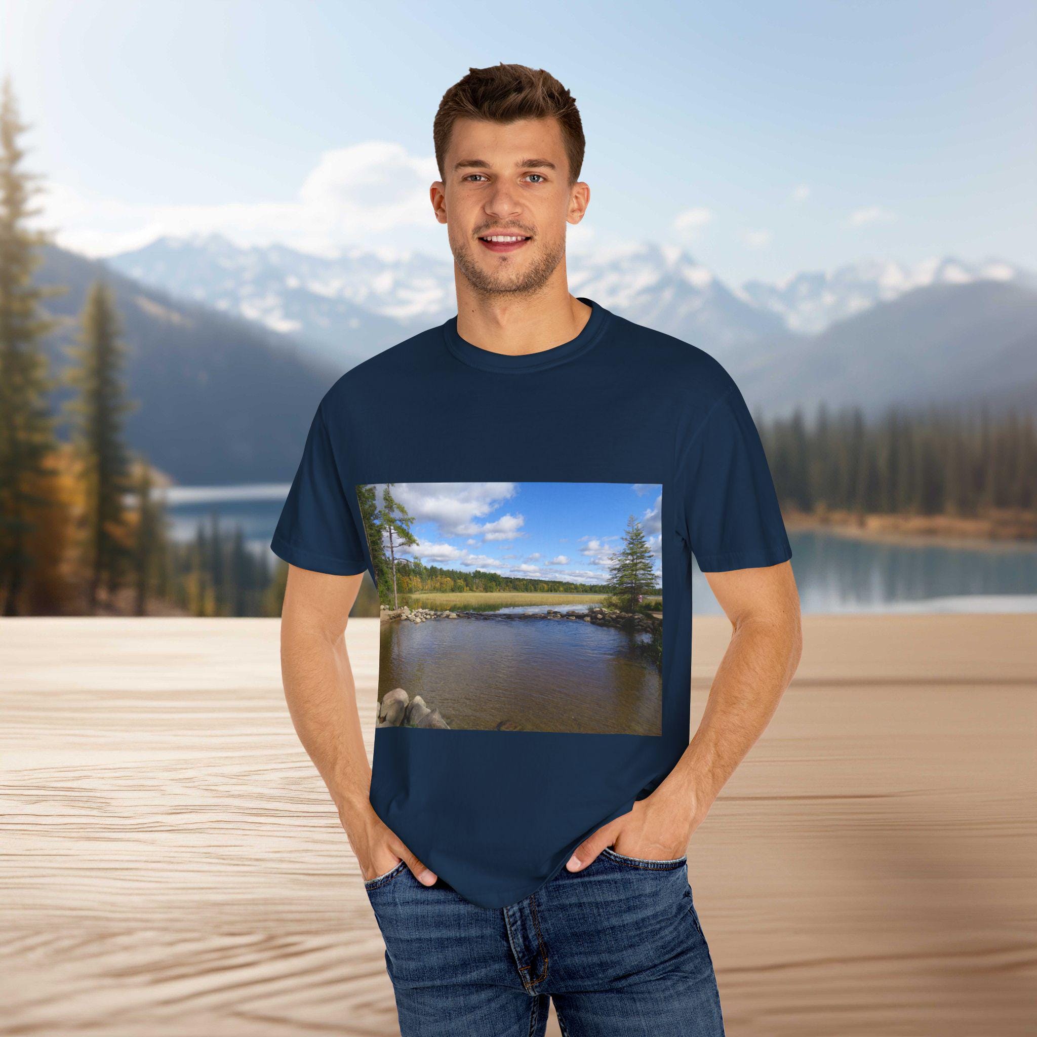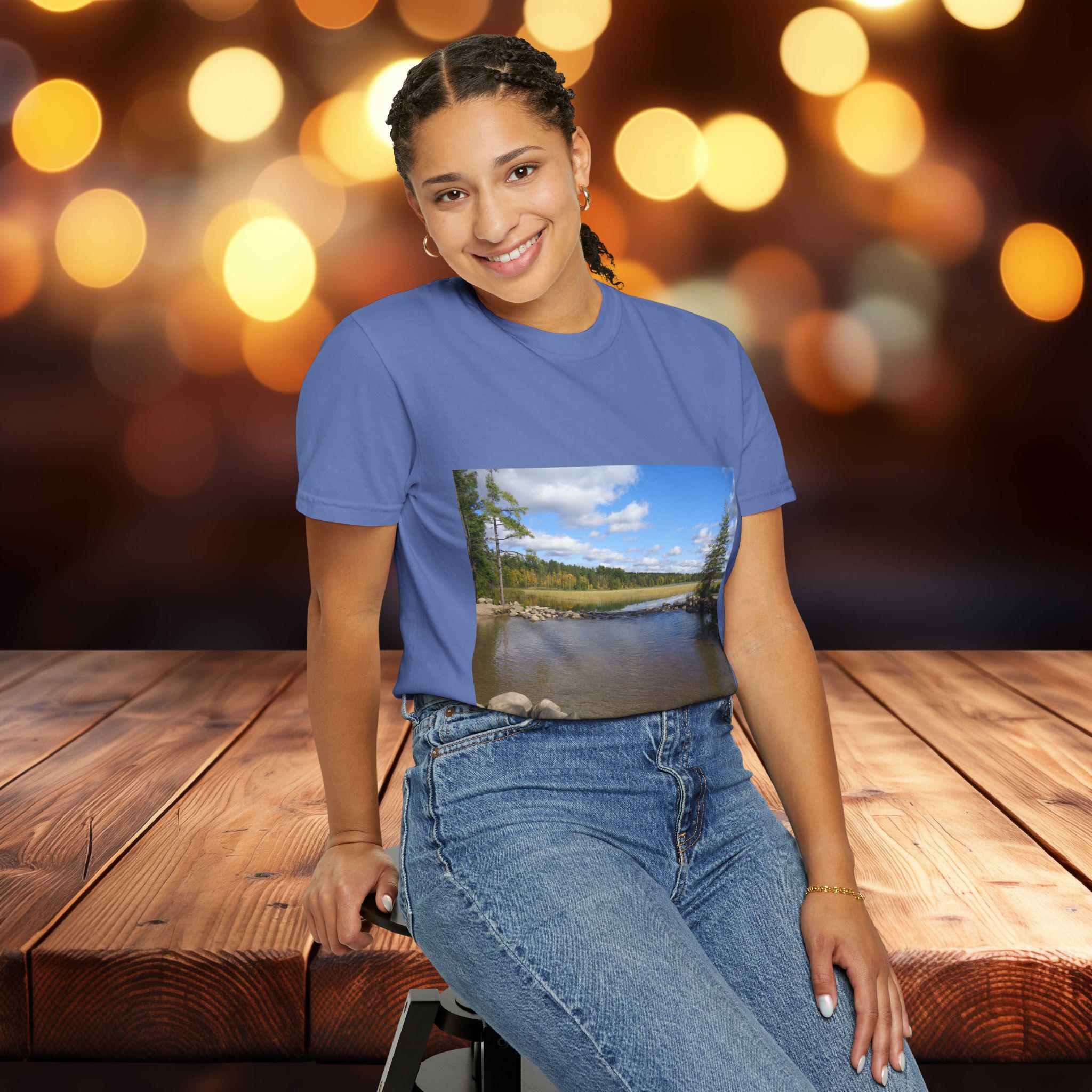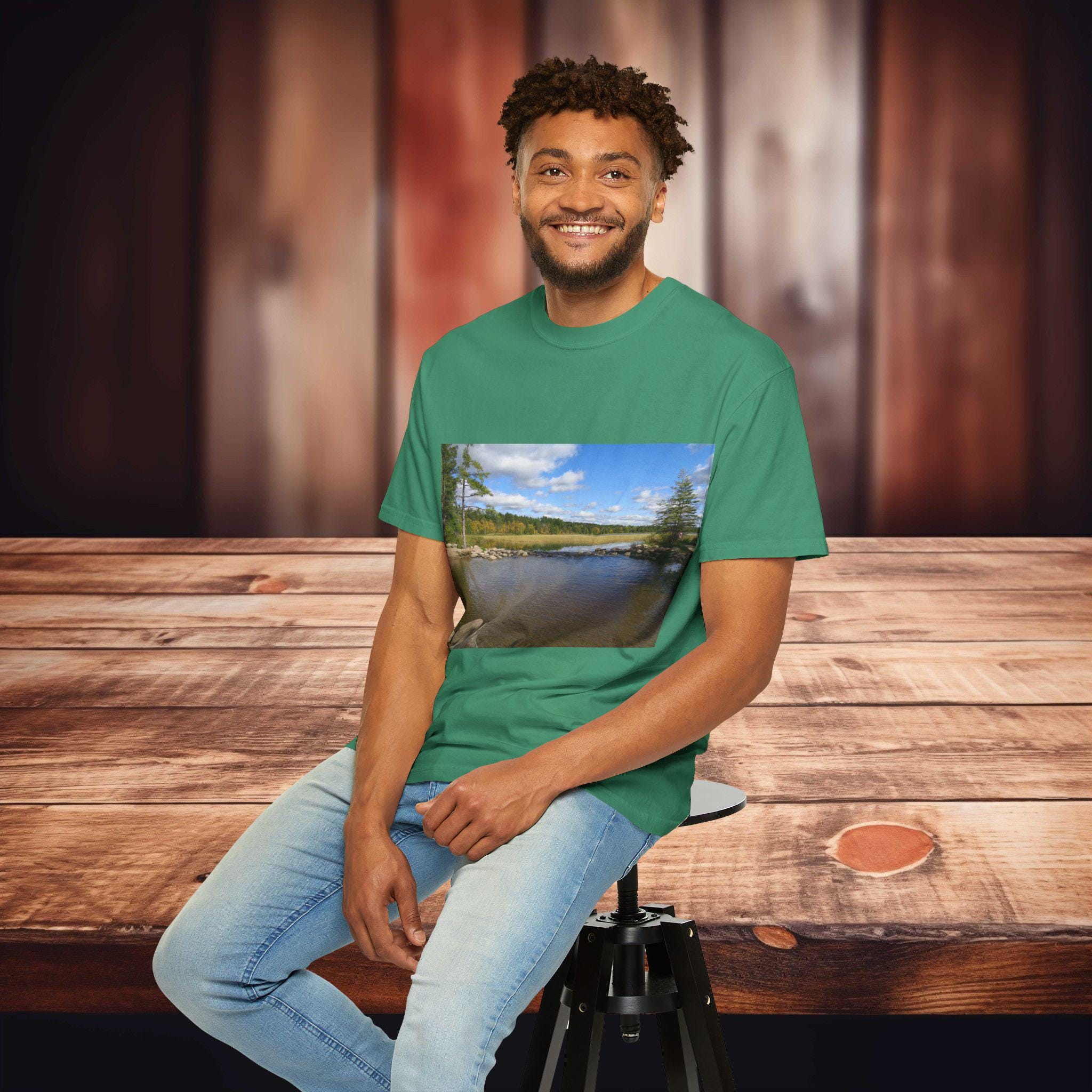 Add a touch of nature to your wardrobe with this Great River Source T-shirt featuring the Mississippi River Source design. The soft color and texture of the garment combined with the relaxed fit and crew neckline make it perfect for both casual and semi-formal settings. Ideal for nature lovers and those who appreciate unique design elements. Perfect for Earth Day, National Park Week, and outdoor enthusiasts.