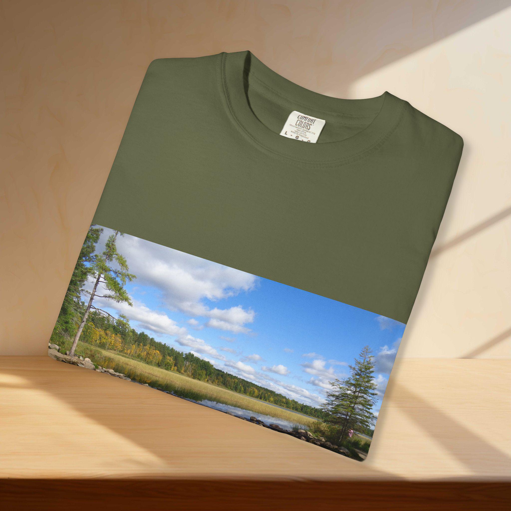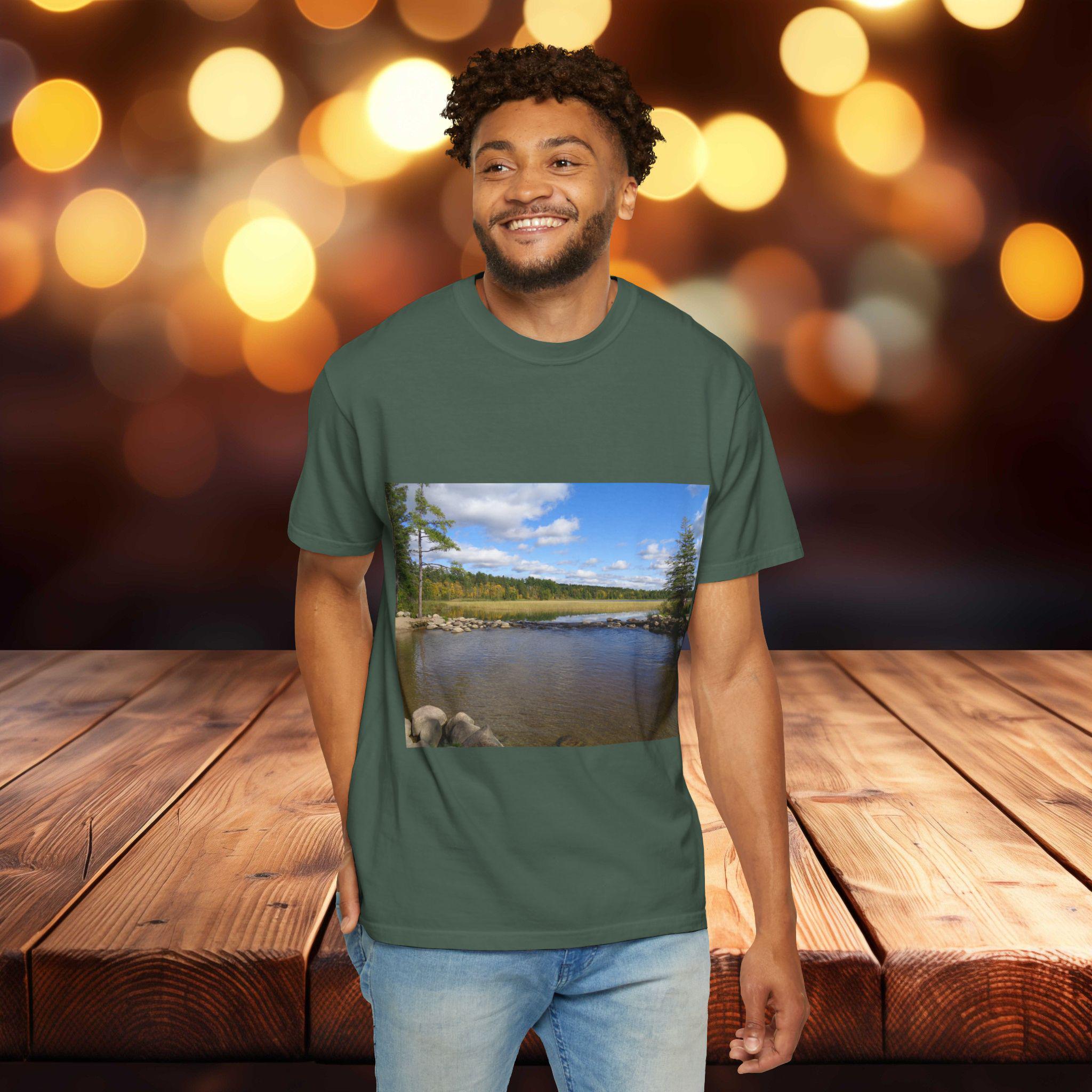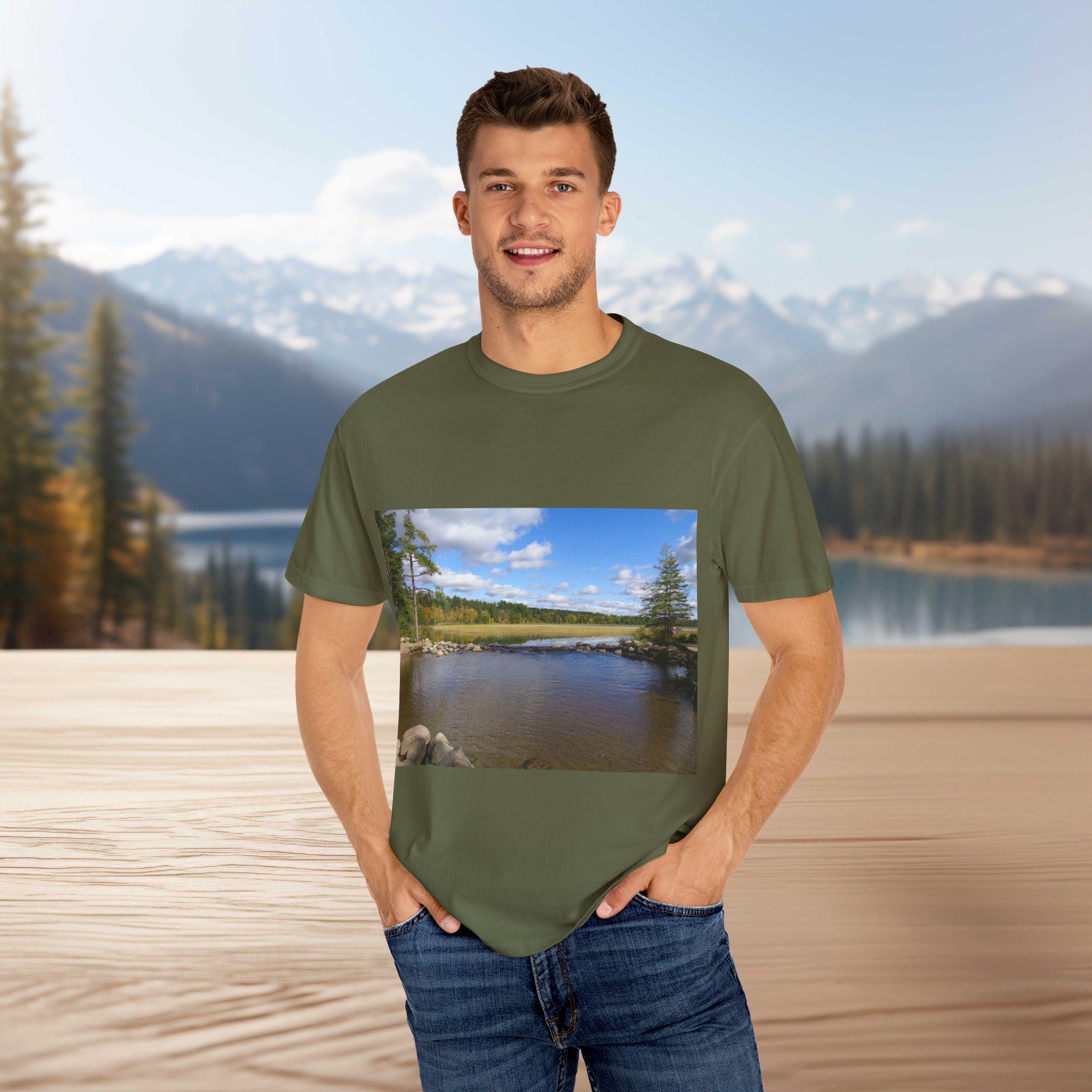 Add a touch of nature to your wardrobe with this Great River Source T-shirt featuring the Mississippi River Source design. The soft color and texture of the garment combined with the relaxed fit and crew neckline make it perfect for both casual and semi-formal settings. Ideal for nature lovers and those who appreciate unique design elements. Perfect for Earth Day, National Park Week, and outdoor enthusiasts.
