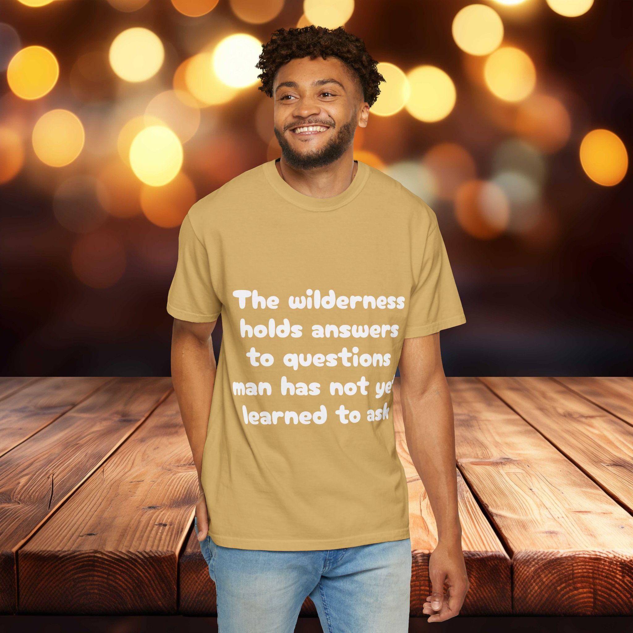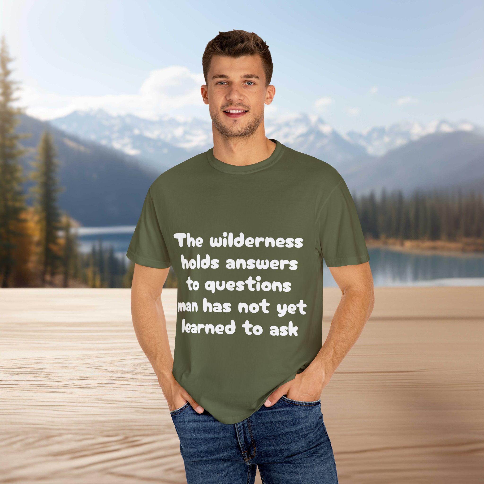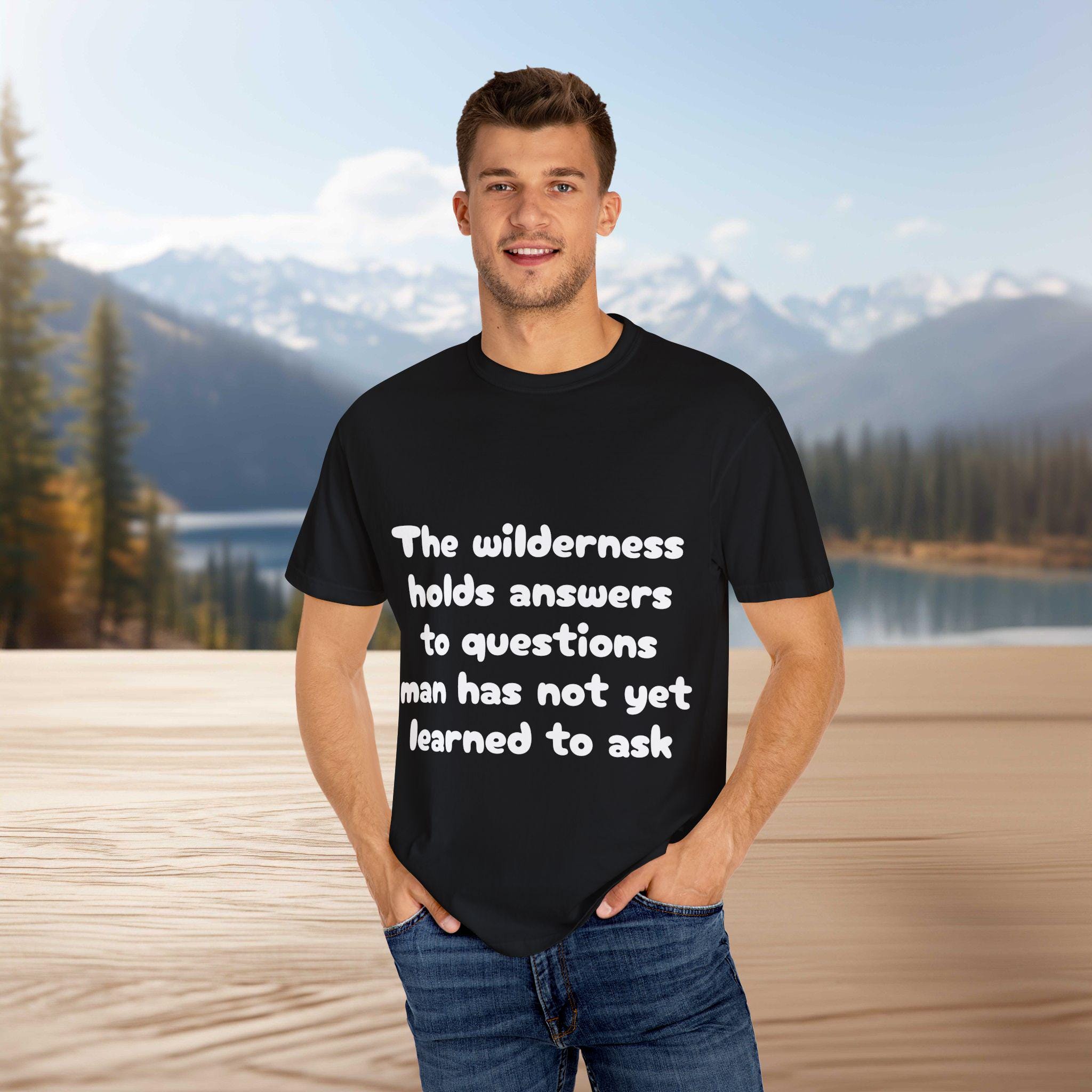 A wilderness-themed T-shirt perfect for nature lovers and outdoor enthusiasts. This adventure shirt features an old wilderness proverb design, making it a great gift for travel enthusiasts. The relaxed fit and classic crew neckline make it suitable for casual and semi-formal settings, offering both comfort and style. Ideal for holidays, camping trips, hiking adventures, and everyday wear.