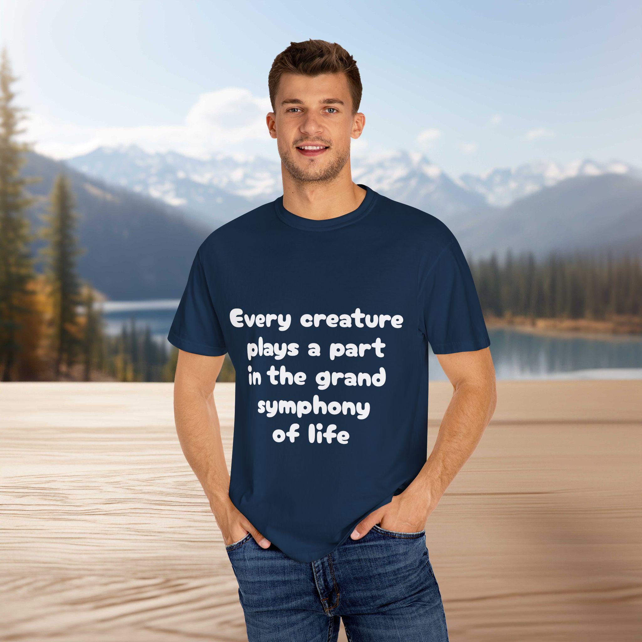 This unique T-shirt design showcases the harmony of life, making it perfect for nature lovers and those who appreciate a deeper connection with the world around them. The unisex garment-dyed fabric provides a soft color and texture, creating a comfortable and versatile piece for casual or semi-formal settings. Ideal for adults, this T-shirt is available in a wide range of sizes and colors, ensuring a perfect fit for every individual. Whether you're celebrating Earth Day or simply want to express your love for nature, this T-shirt is a must-have addition to your wardrobe.