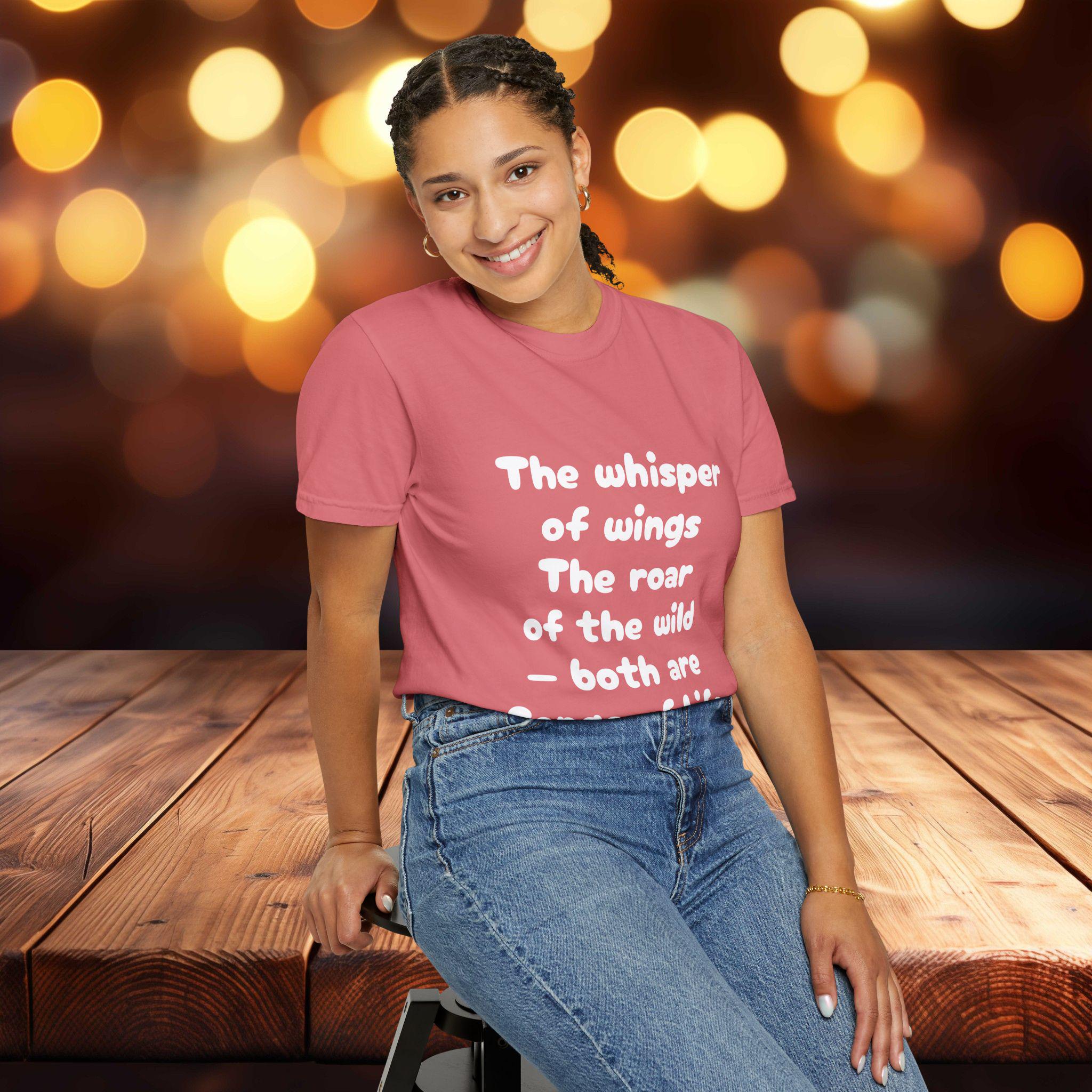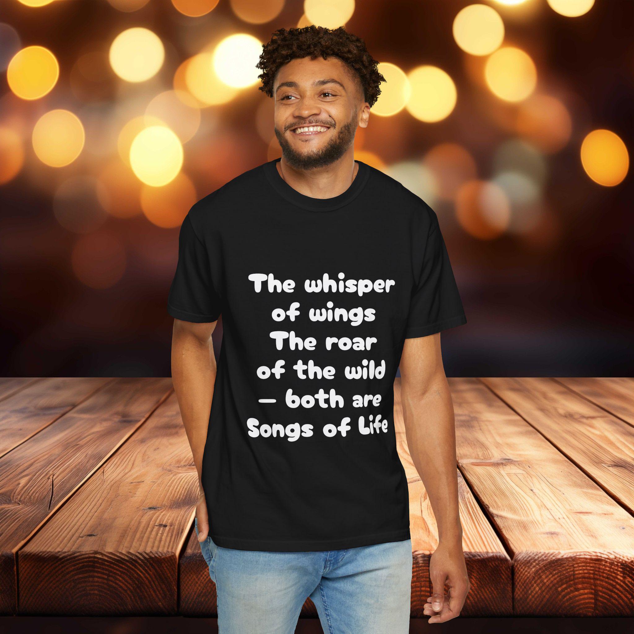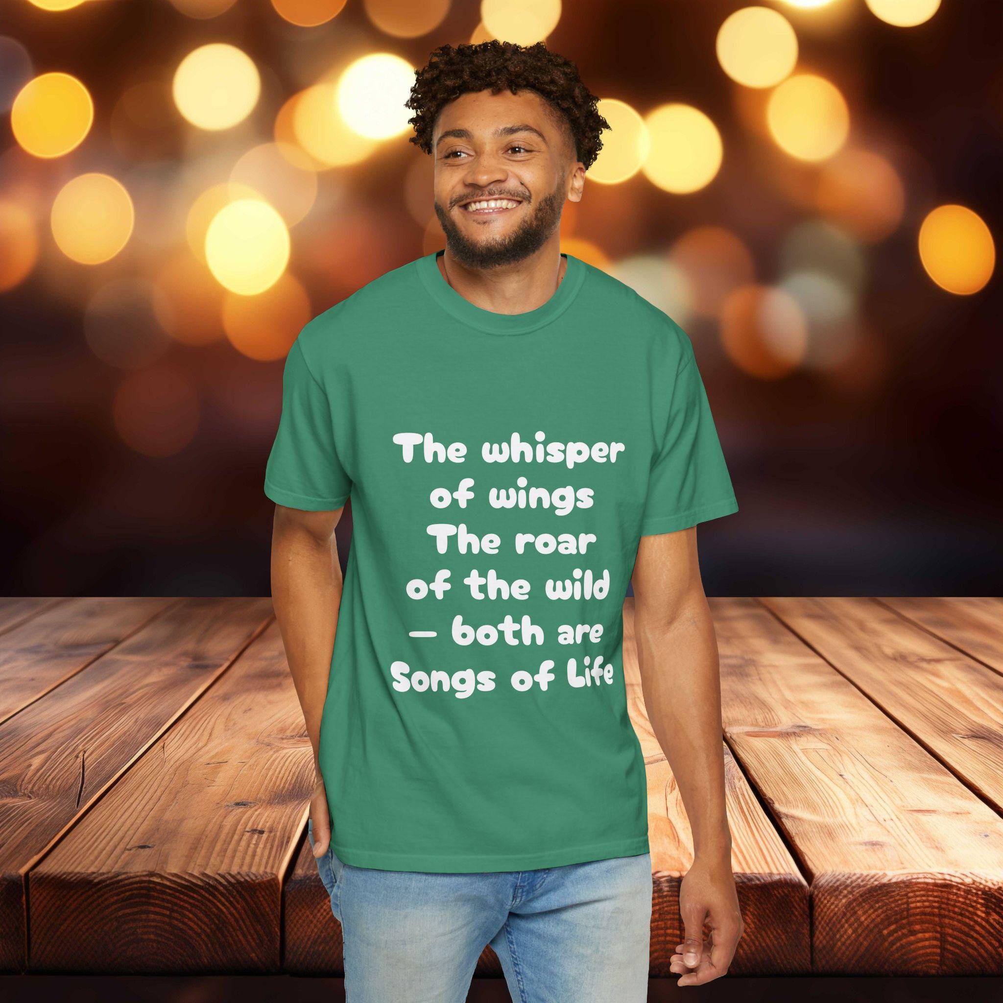 A unisex garment-dyed T-shirt featuring the message 'Protect the wild - it protects us.' This tee gives off a laid-back, outdoorsy vibe and is perfect for nature lovers looking to make a statement. It is relevant for Earth Day, World Wildlife Day, and everyday casual wear.