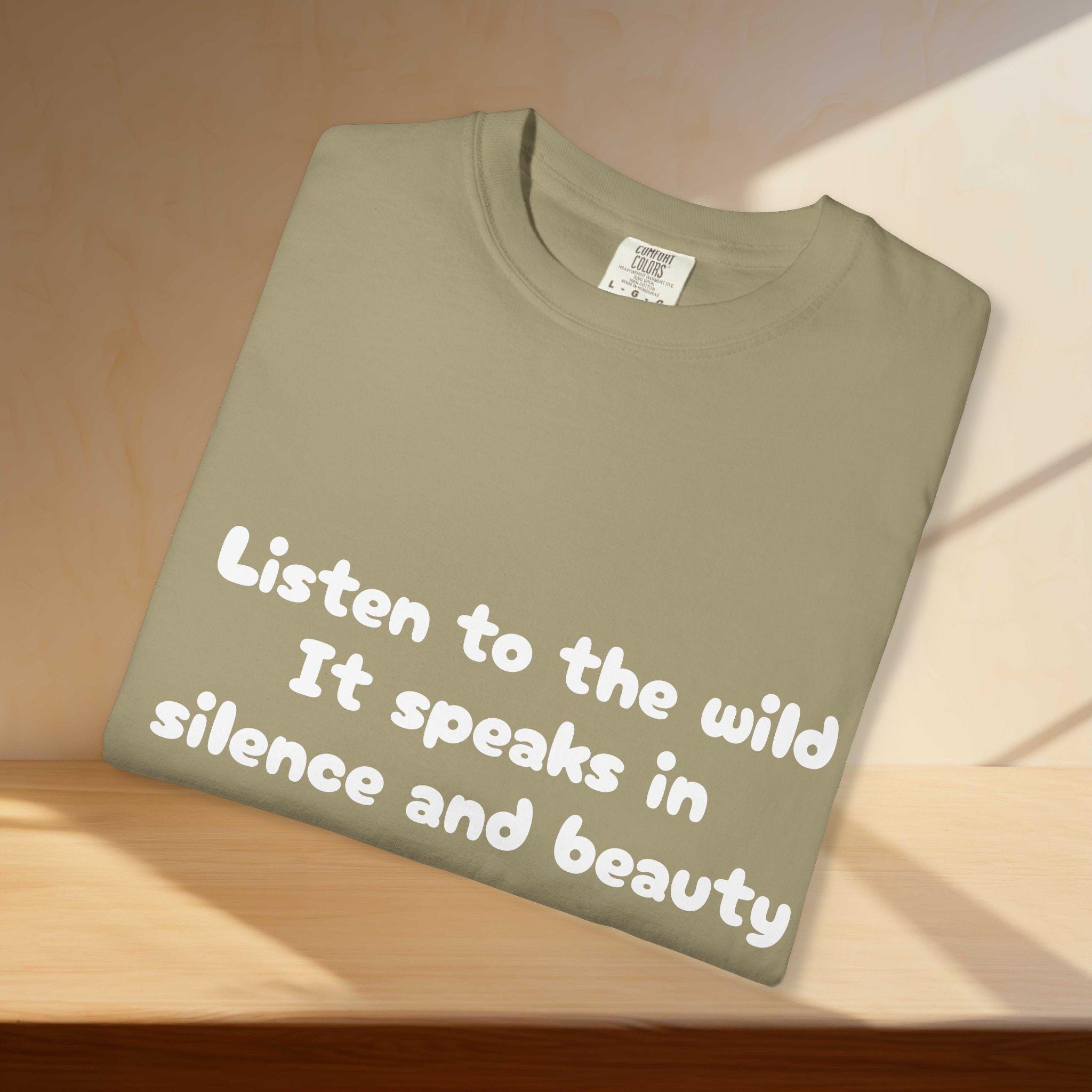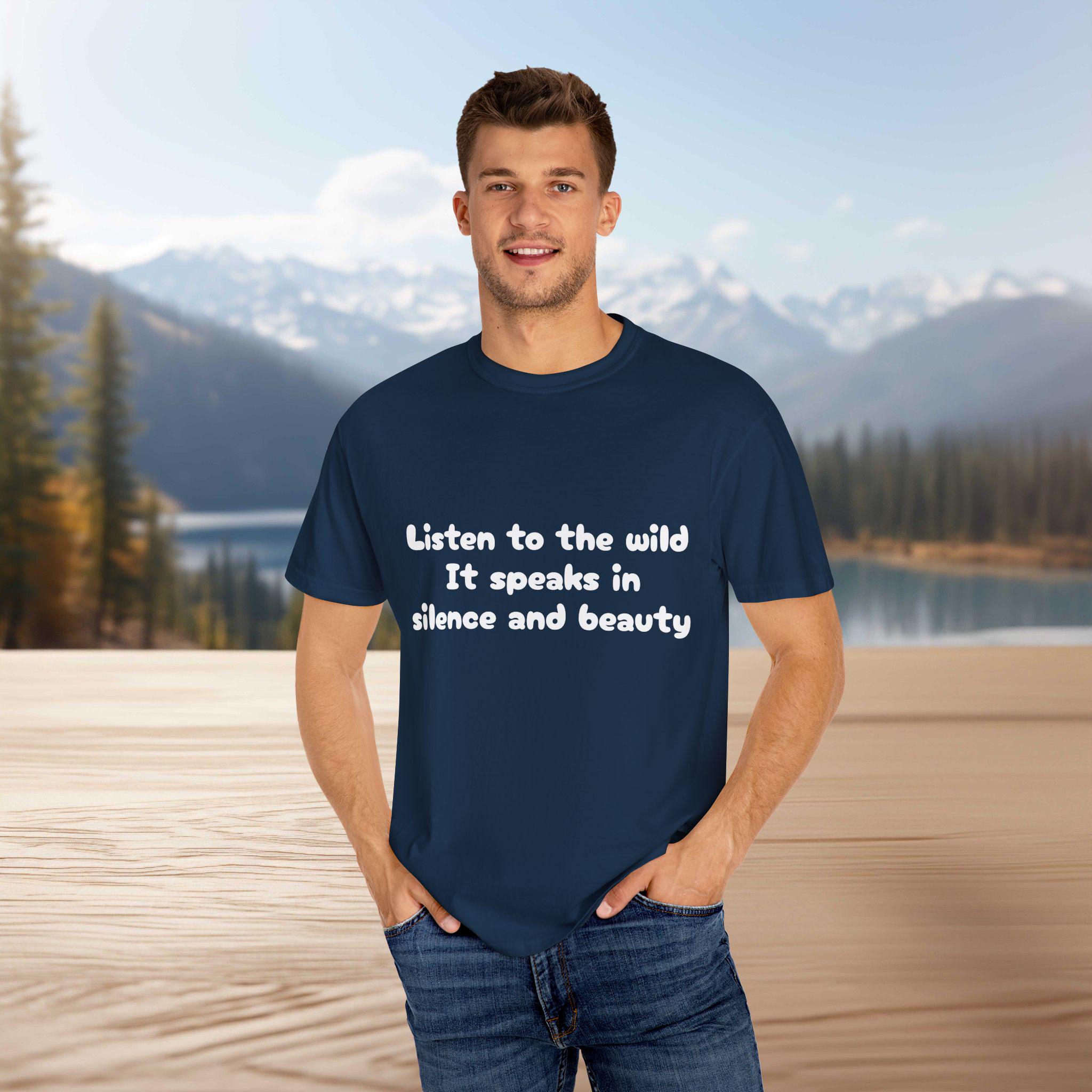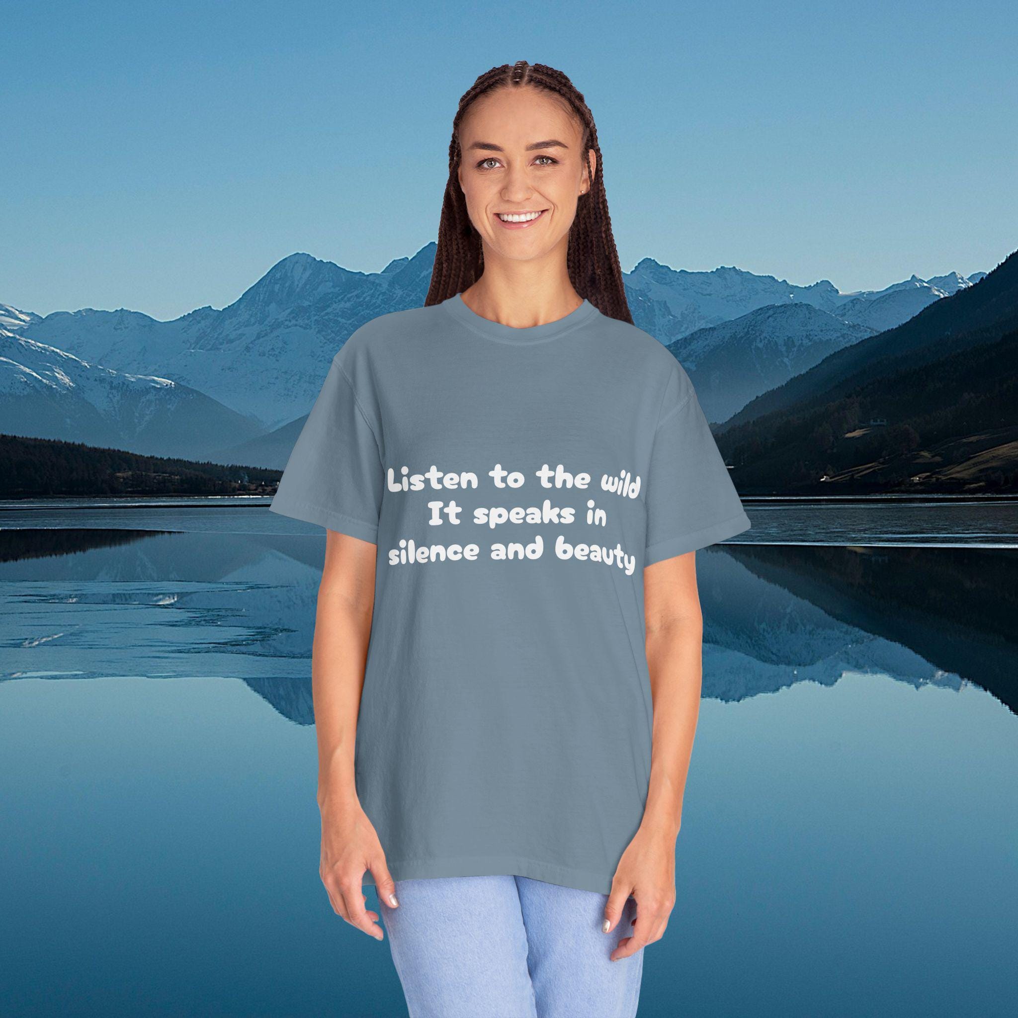 Embrace the silence and beauty of the wild with this Garment-Dyed T-Shirt. Perfect for those who appreciate nature and tranquility, this tee is a versatile addition to any wardrobe. Ideal for casual outings or layering for a more polished look, this shirt is a must-have for nature lovers and those seeking comfort and style. Great for gifting during holidays like Earth Day or for outdoor enthusiasts.