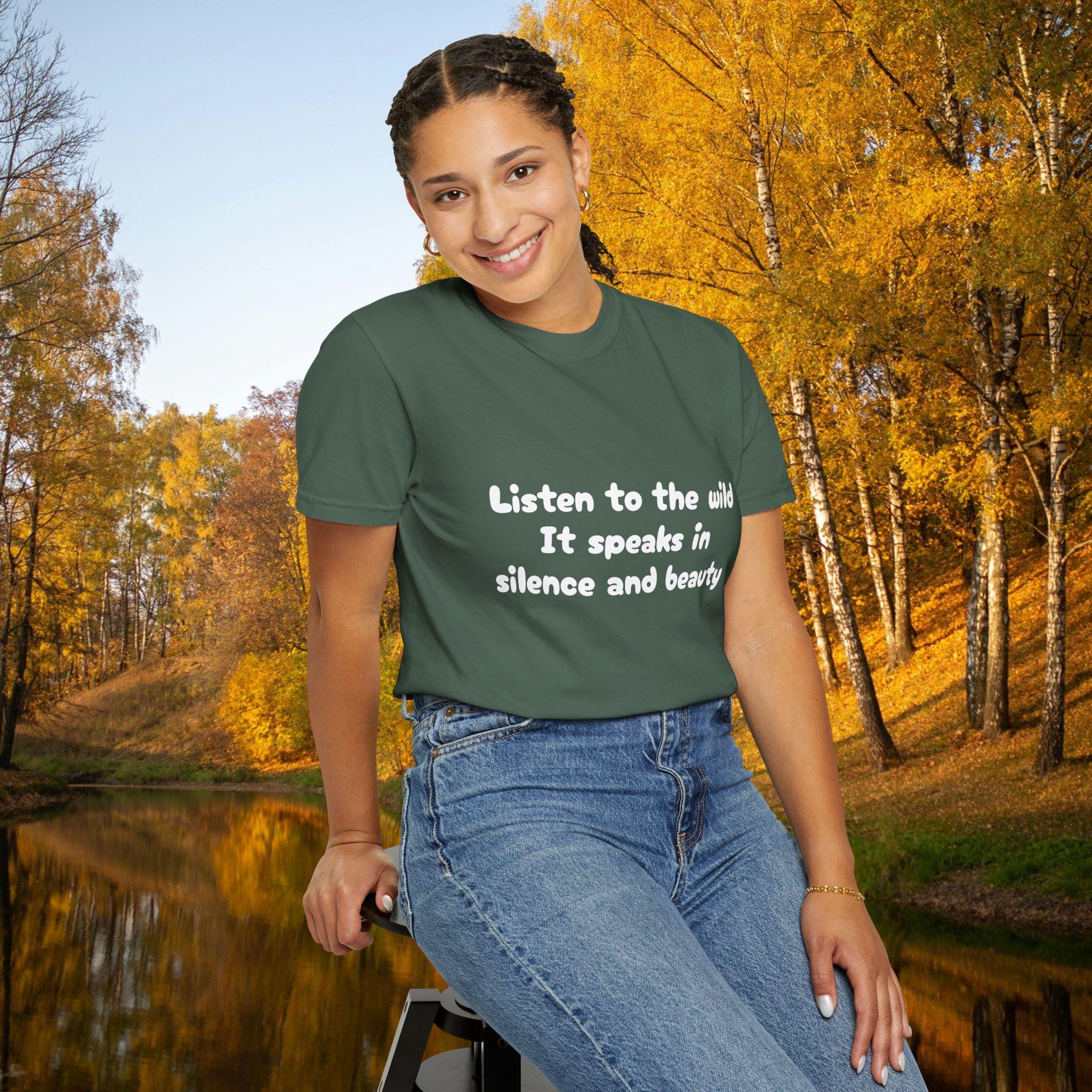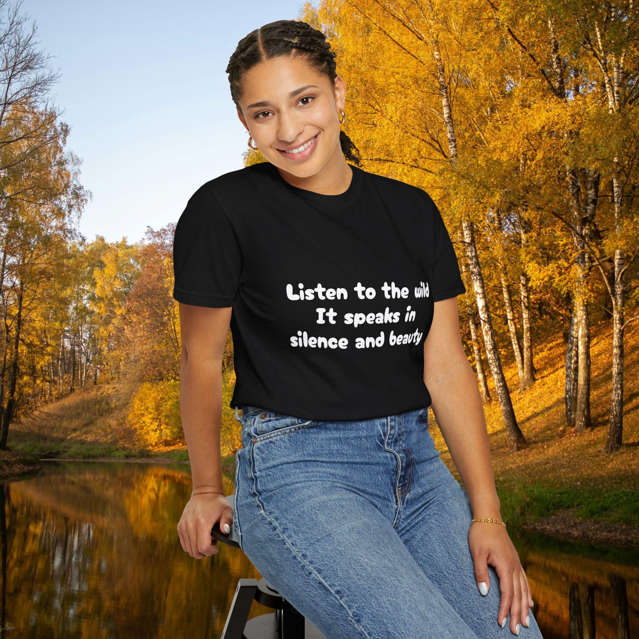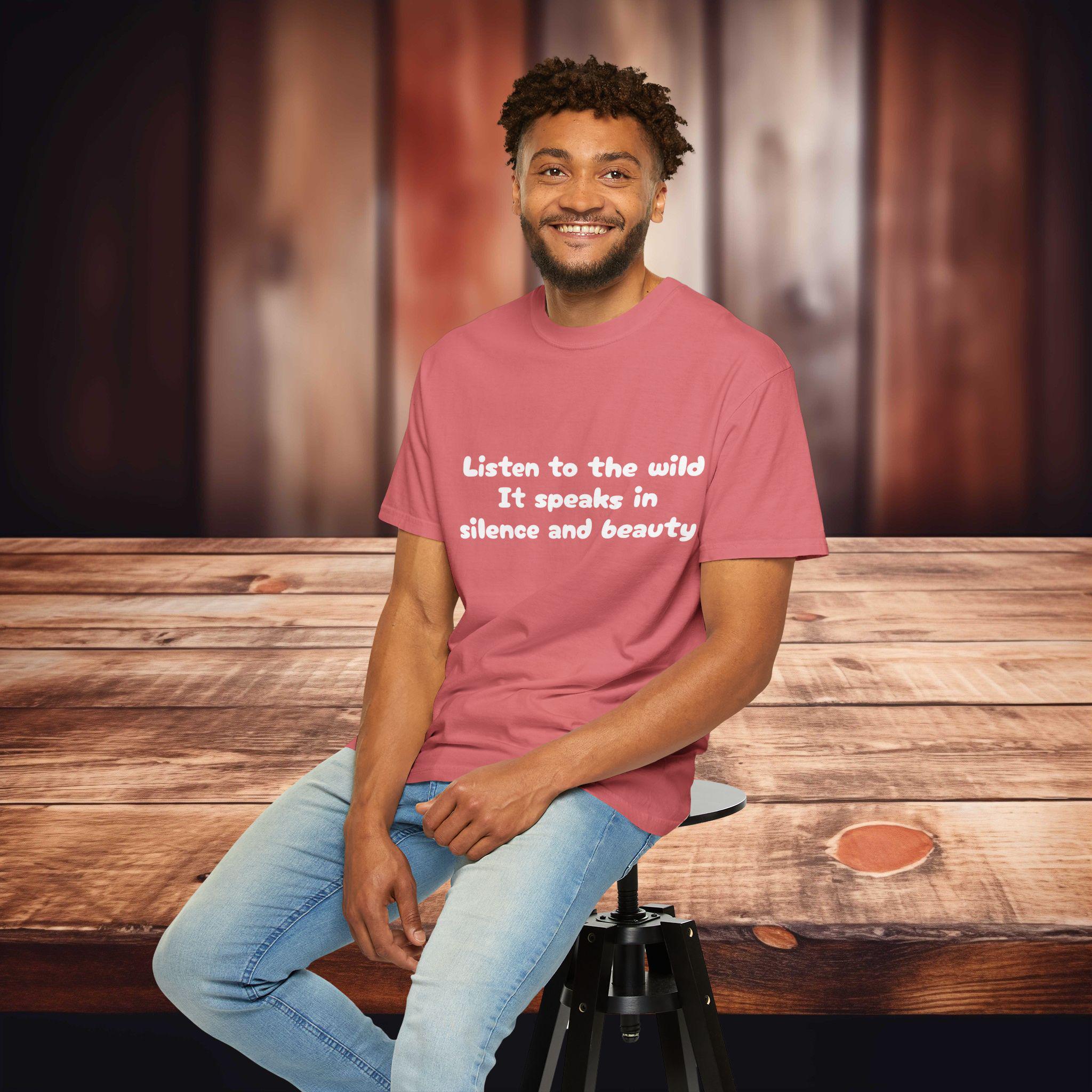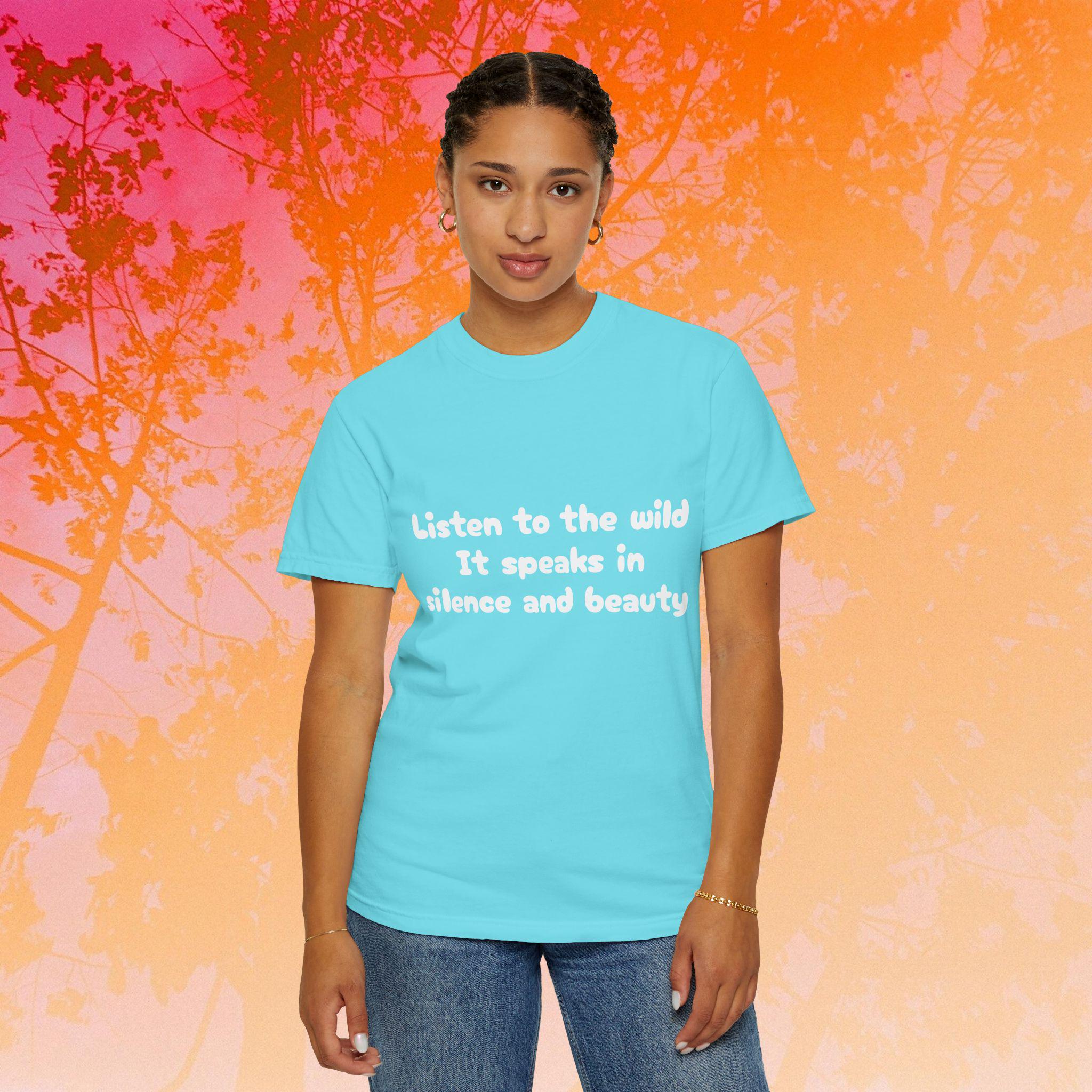 Embrace the silence and beauty of the wild with this Garment-Dyed T-Shirt. Perfect for those who appreciate nature and tranquility, this tee is a versatile addition to any wardrobe. Ideal for casual outings or layering for a more polished look, this shirt is a must-have for nature lovers and those seeking comfort and style. Great for gifting during holidays like Earth Day or for outdoor enthusiasts.