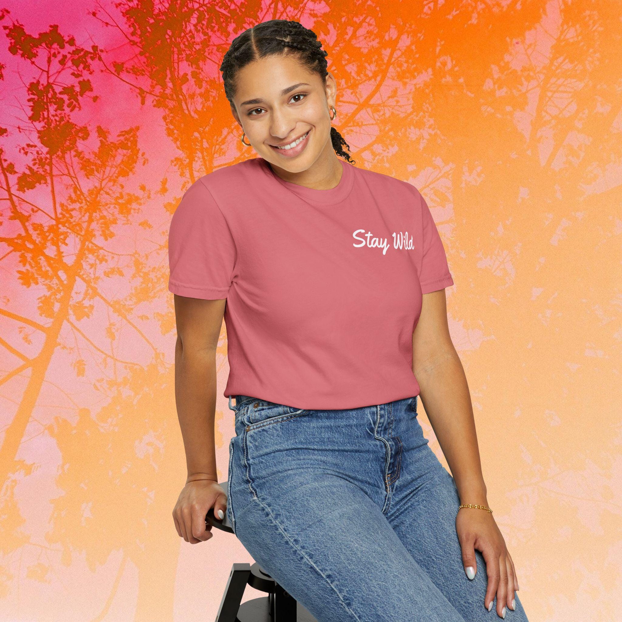 Stay Wild – because your spirit was made to roam free! Embrace your love for adventure, the great outdoors, and untamed moments with this stylish and comfy Stay Wild t-shirt. Whether you’re hiking trails, camping under the stars, or just living life with fearless energy, this shirt is your perfect companion.