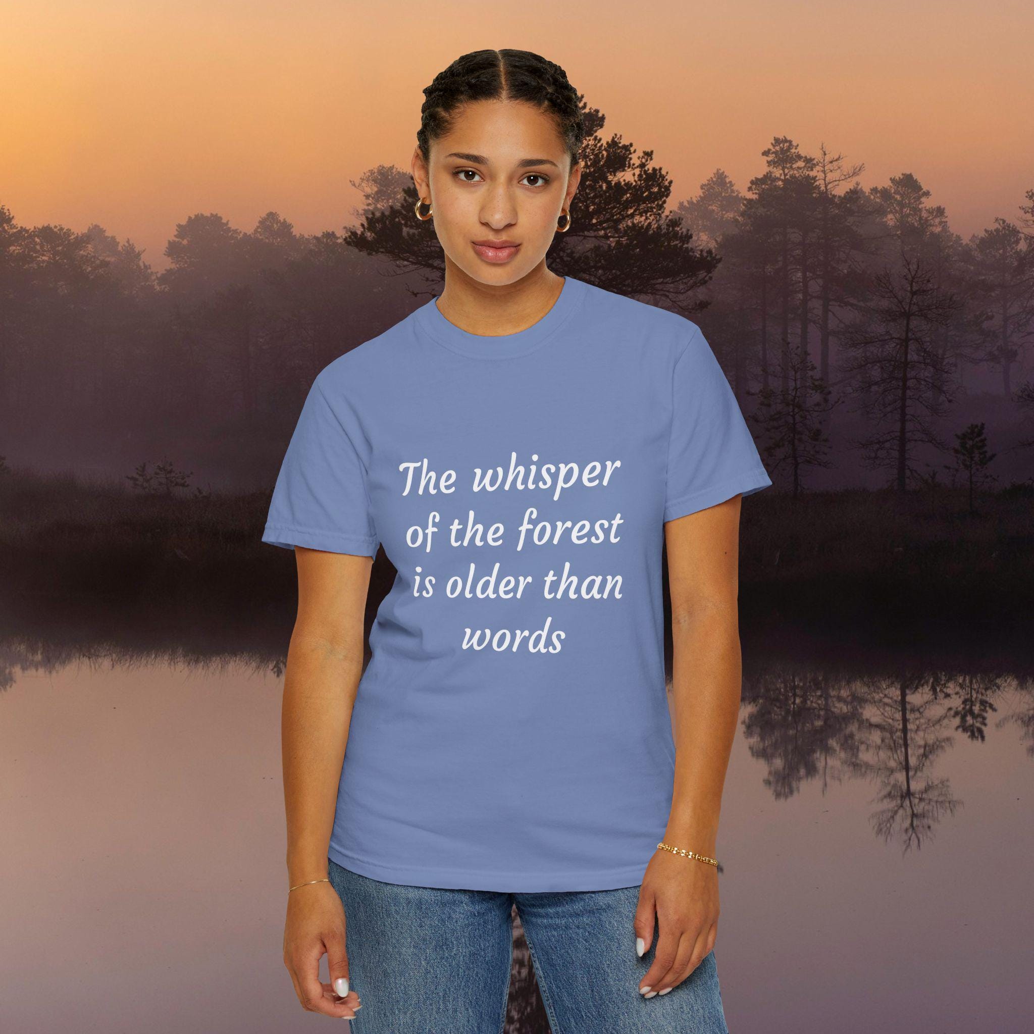 Step into timeless wonder with our "The whisper of the forest is older than words" t-shirt — a tribute to the ancient magic of the woods. Whether you're a hiker, nature lover, or simply someone who finds peace among the trees, this soft and comfortable tee carries the spirit of the forest with you.