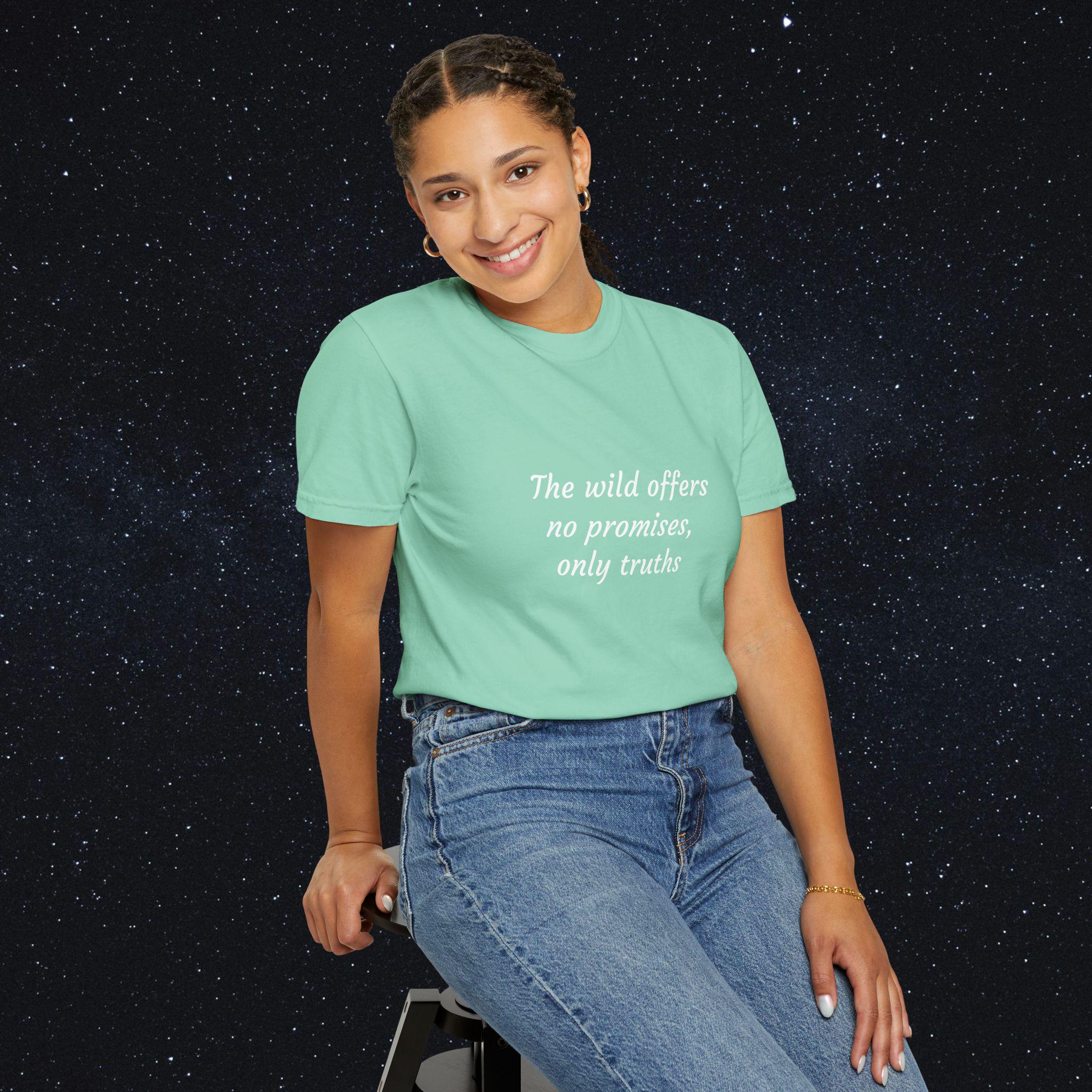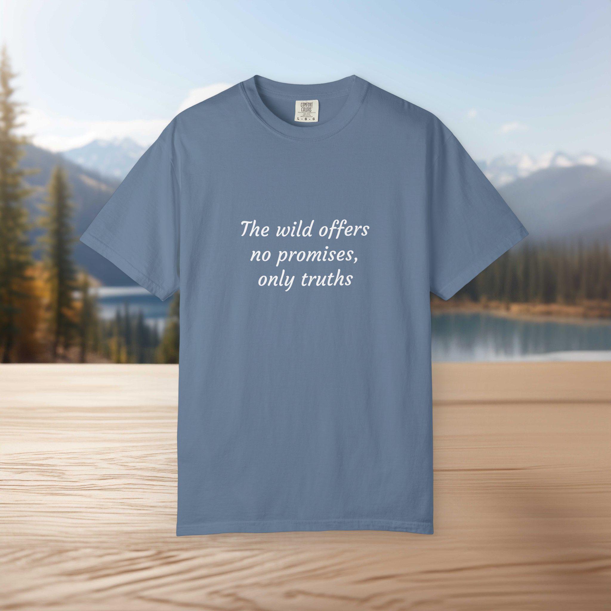 The wild offers no promises, only truths. Embrace the honesty of nature with this minimalist yet powerful wilderness quote tee. Designed for those who walk the untamed path, this shirt speaks to the soul of every adventurer, hiker, and deep thinker. Whether you're exploring mountain trails, listening to the wind in the trees, or sitting quietly by a fire, this shirt reminds you of the raw, unspoken truths only the wild can reveal.