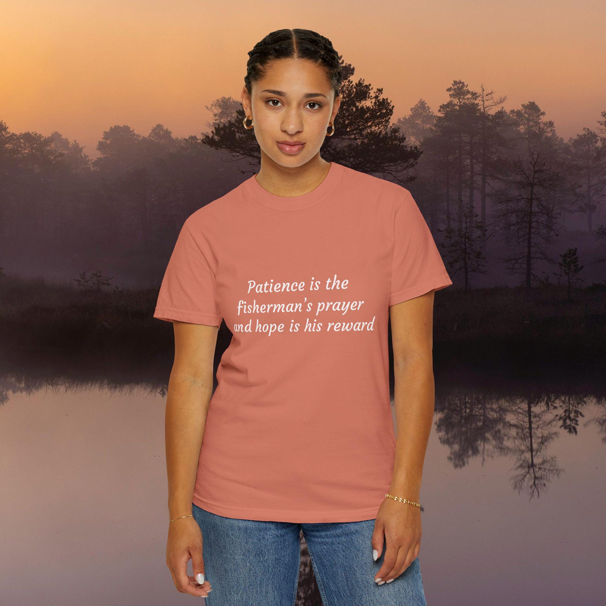 Fishing is more than a pastime — it’s a quiet act of faith. Our "Patience is the fisherman’s prayer, and hope is his reward" t-shirt captures the timeless spirit of those who find peace by the water and meaning in the stillness between casts. Ideal for anglers who understand that every moment on the water holds a deeper truth.