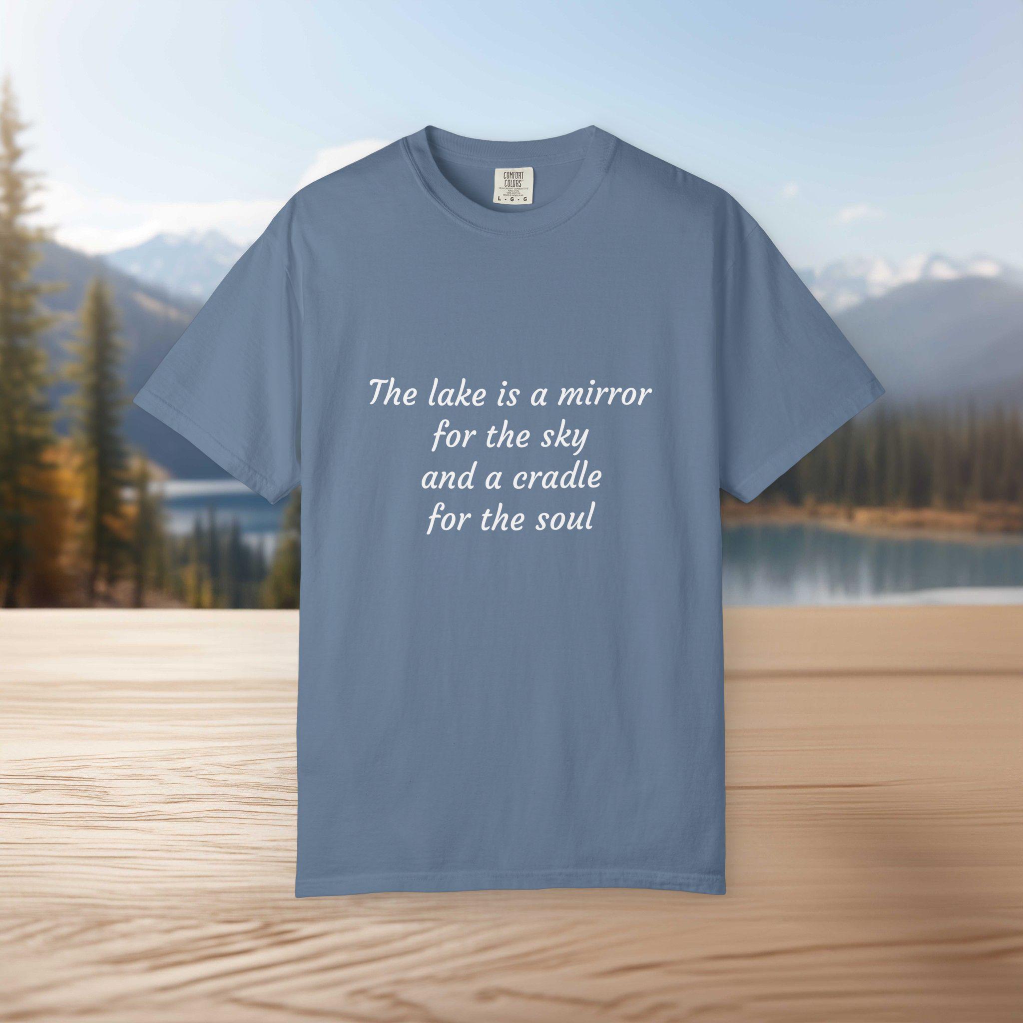 The lake speaks to the soul. Wear the calm, carry the reflection. Our "The lake is a mirror for the sky and a cradle for the soul" t-shirt is perfect for lake lovers, nature dreamers, and anyone who finds peace in still waters and open skies. Whether you're relaxing at the cabin, fishing at sunrise, or stargazing by the shore, this soft and comfy tee is your reminder of serenity.