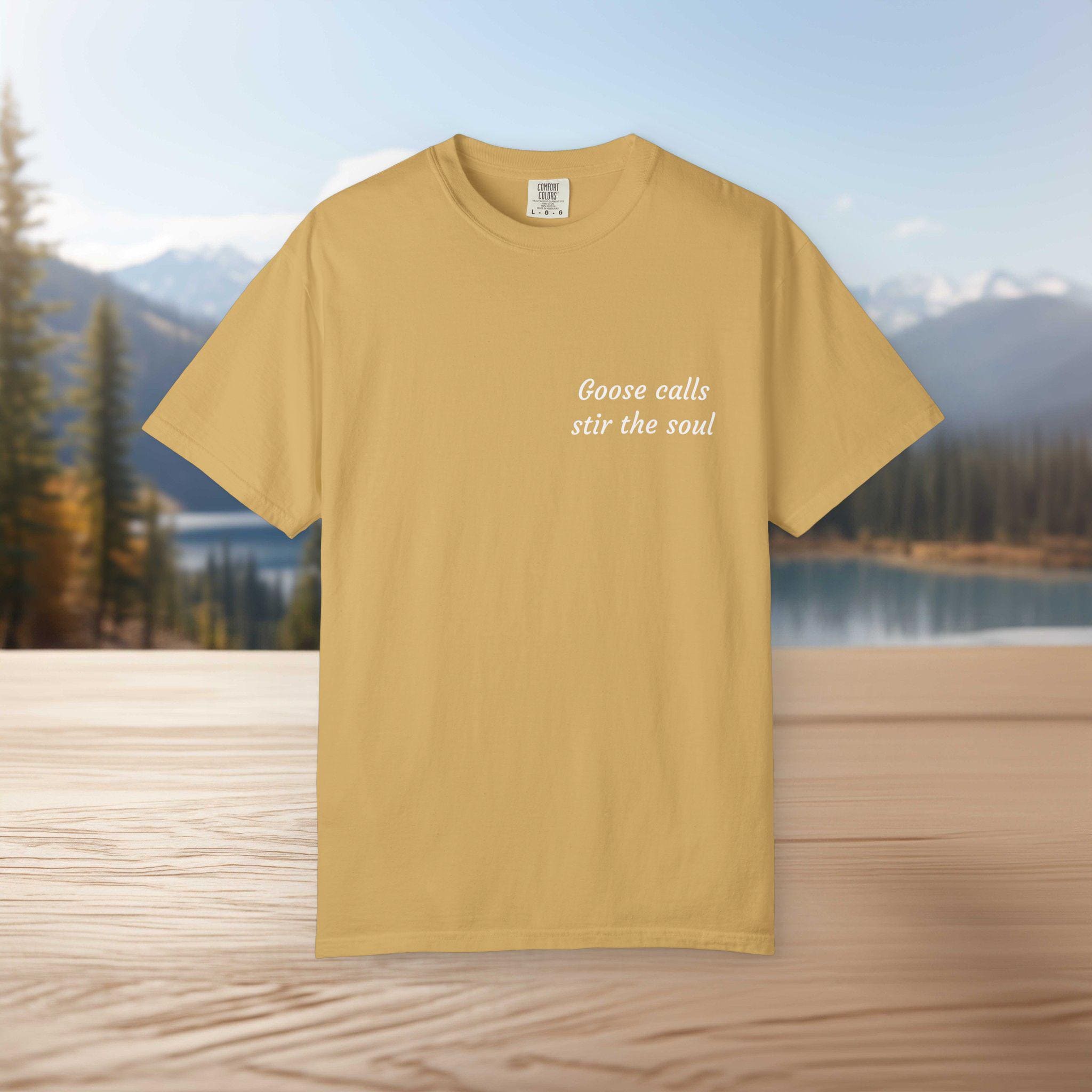 A honk in the sky, a chill in the air — and your heart knows it’s time to move, to listen, to feel. This Goose Calls Stir the Soul tee honors the deep, ancient pull of migration, memory, and wild instinct. Whether you're standing at the lake’s edge or watching the V-formation overhead, this shirt connects you to the rhythm of nature’s call.