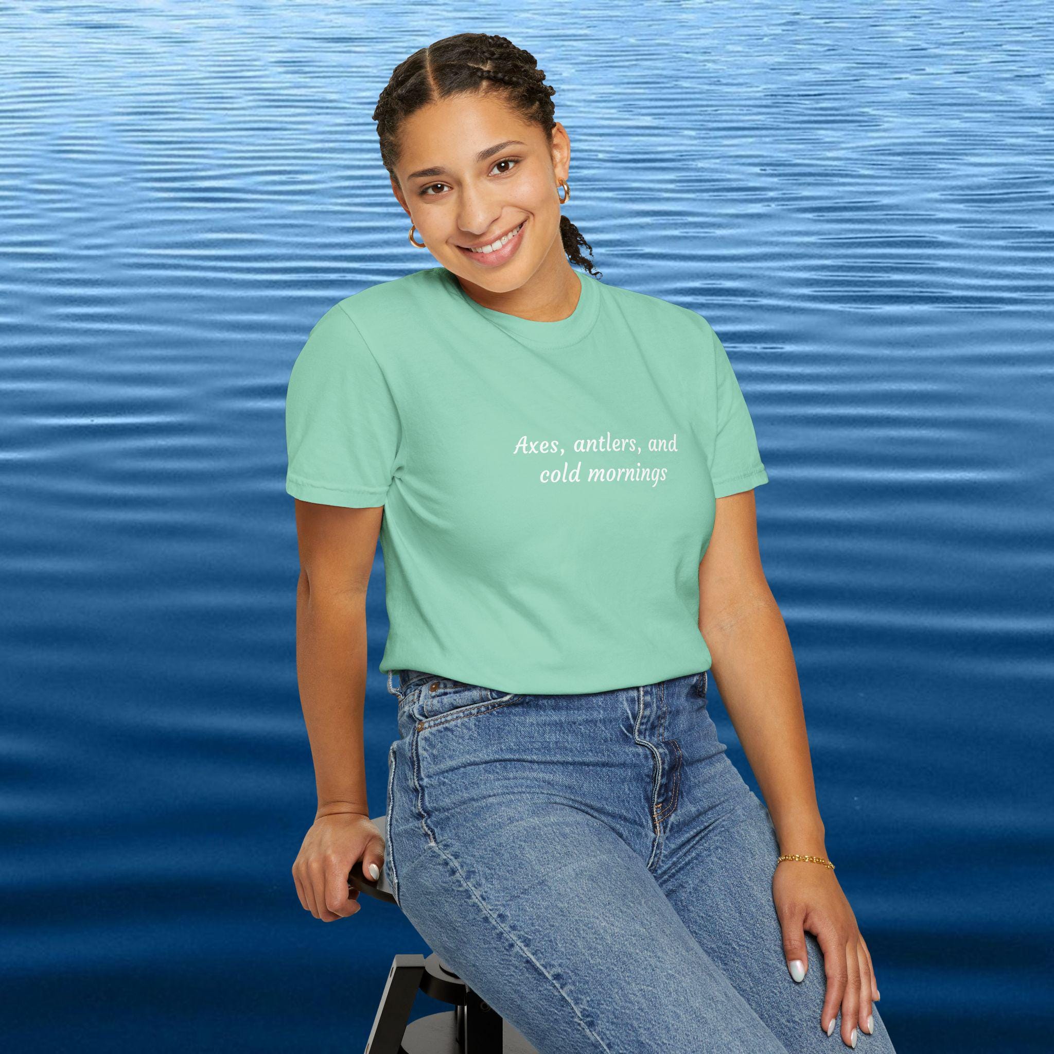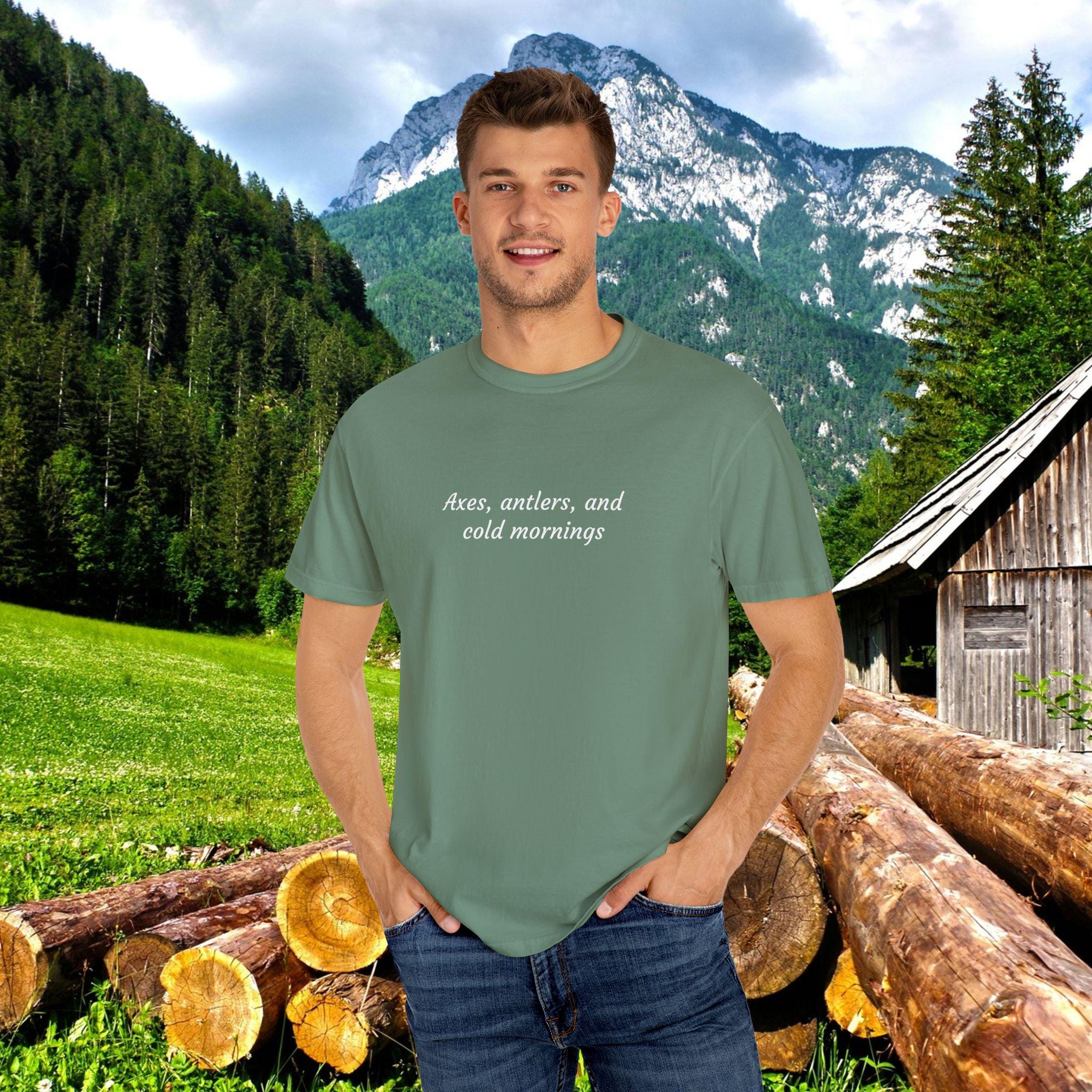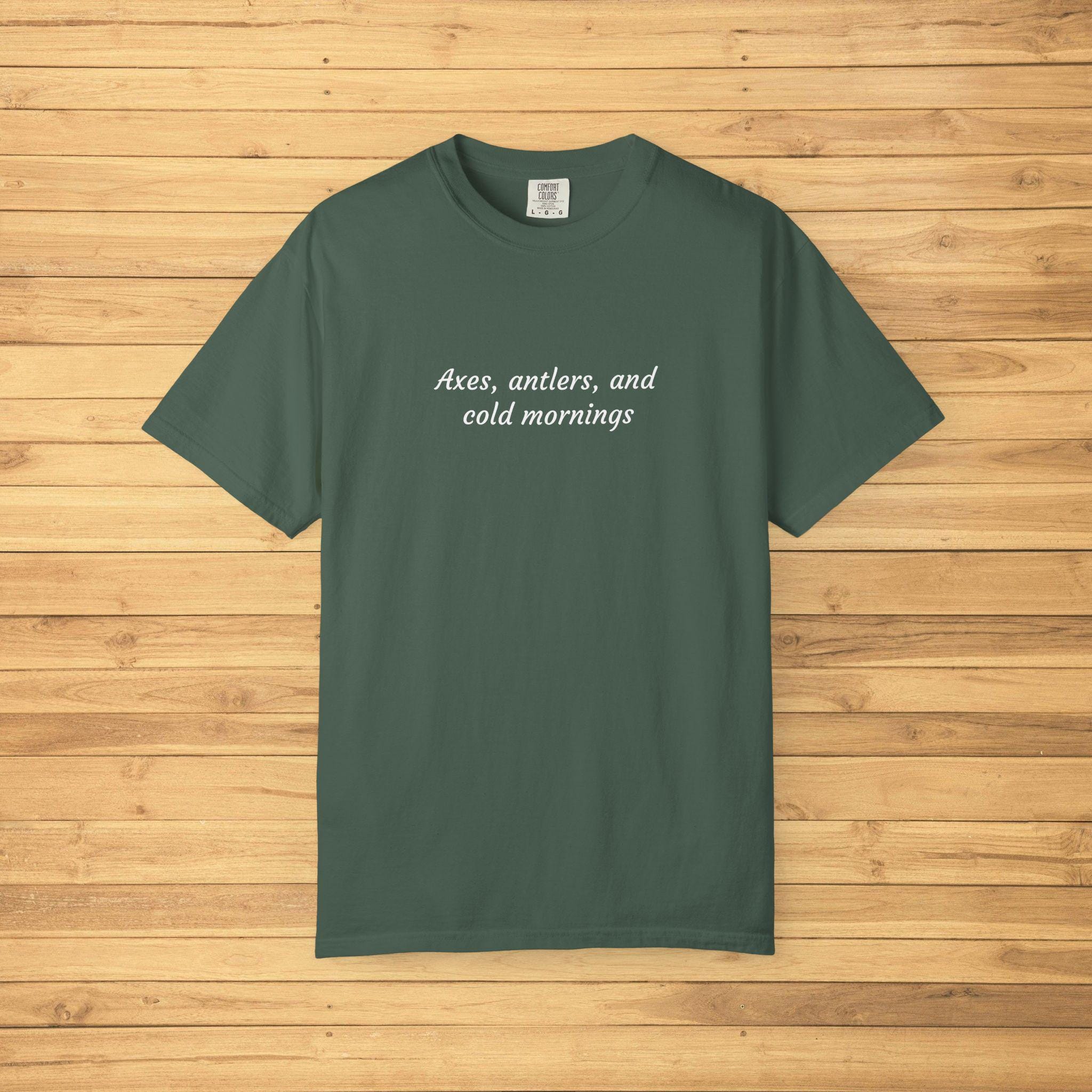 Axes, antlers, and cold mornings. For those who rise with the frost, stack wood by hand, and live for quiet trails and campfire smoke — this shirt speaks your language. Rugged yet soft, it captures the spirit of early mornings in the wild where every breath is steam and every sound is sacred.