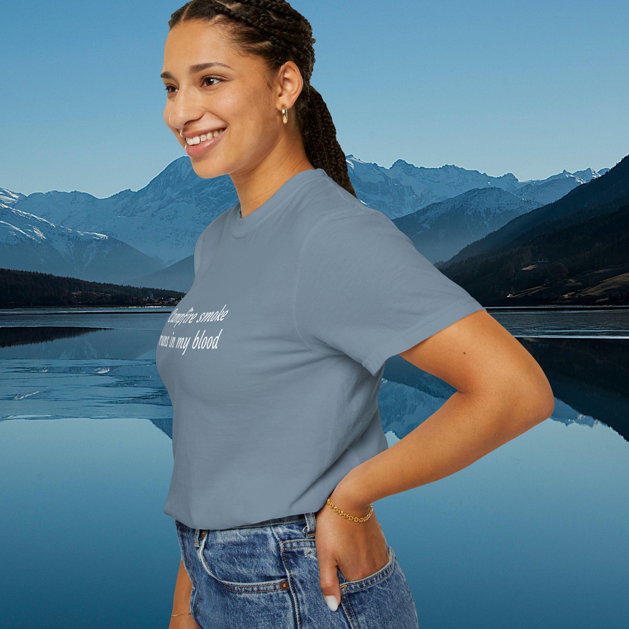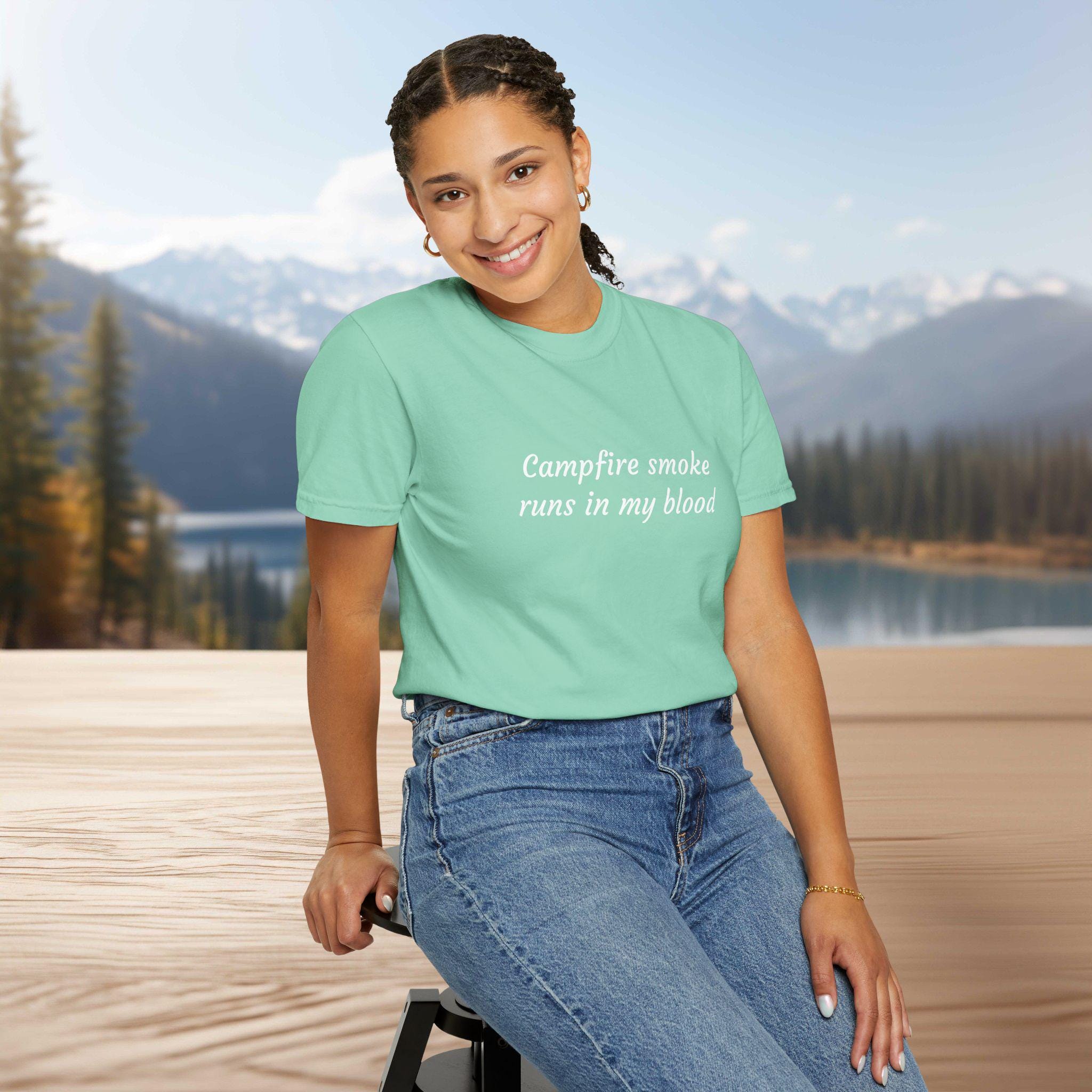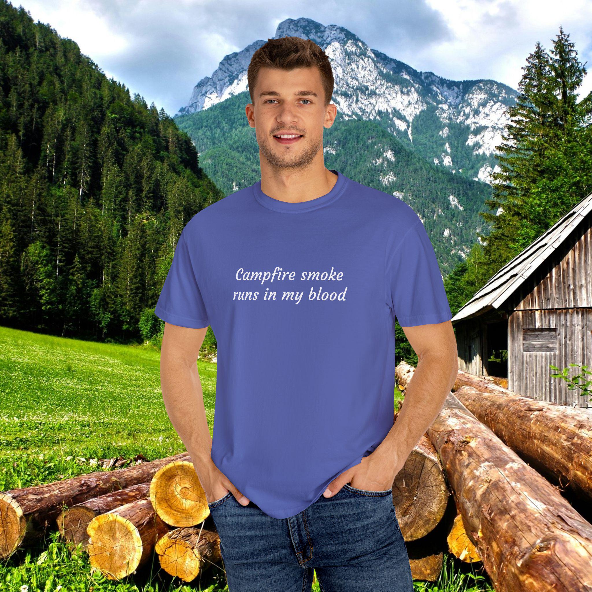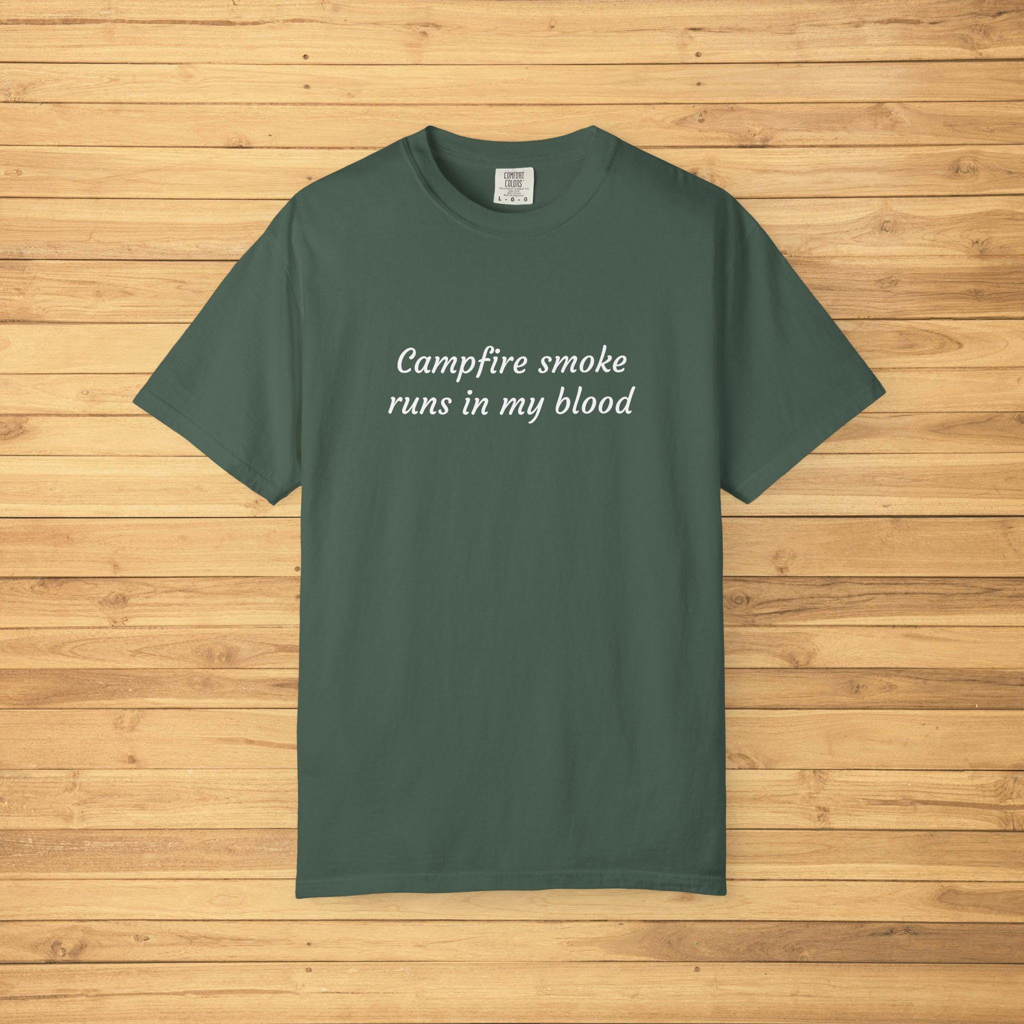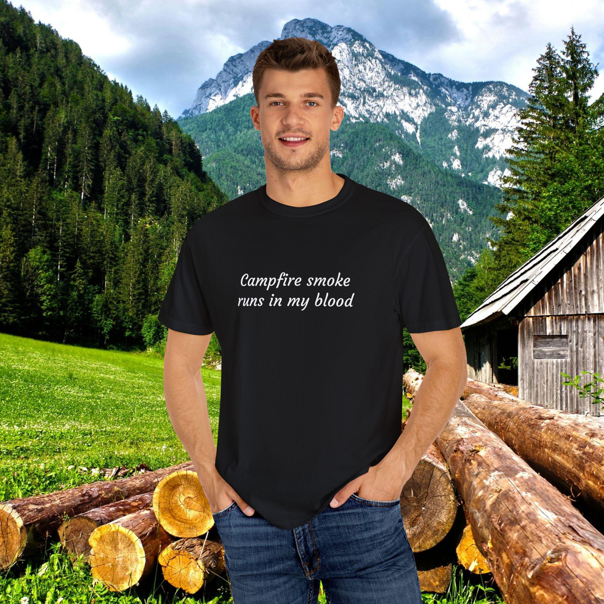 Campfire smoke runs in my blood — for the souls who feel most alive under open skies, with firelight dancing and stories rising with the smoke. This shirt honors the ones who carry the scent of pine, ash, and freedom in their hearts.