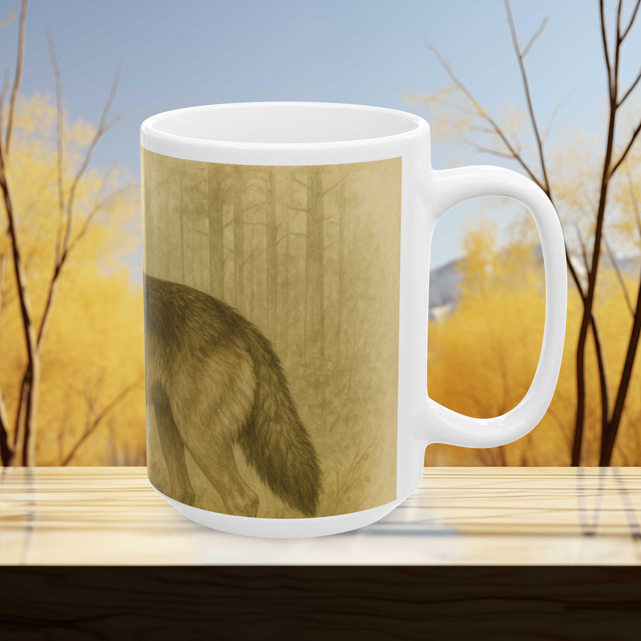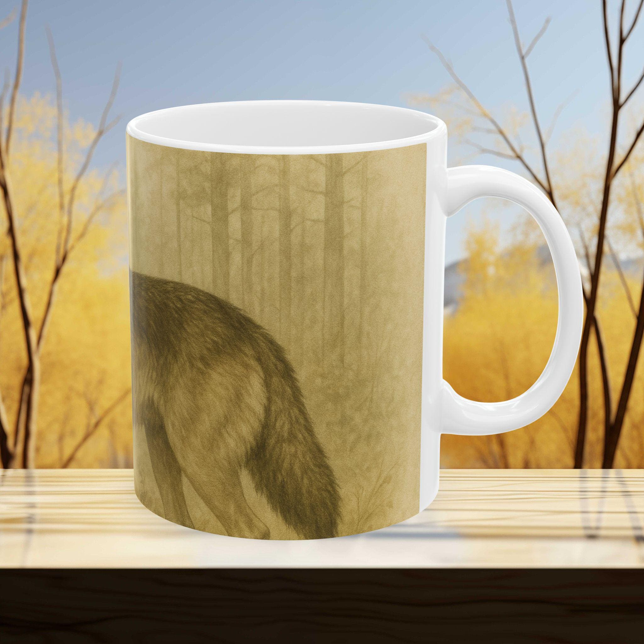 Descriptive Phrases - Ceramic Mug - Wolf Art Mug - Personalized Gift - Gift for him - Gift for her - Animal lover gift - Nature coffee mug - Wildlife Decor - Rustic Home ware - Unique Mug Design - Coffee Lovers Gift - Artistic Ceramic Cup - Nature Lover's Mug - Outdoor Theme Mug - Wolf Art Mug