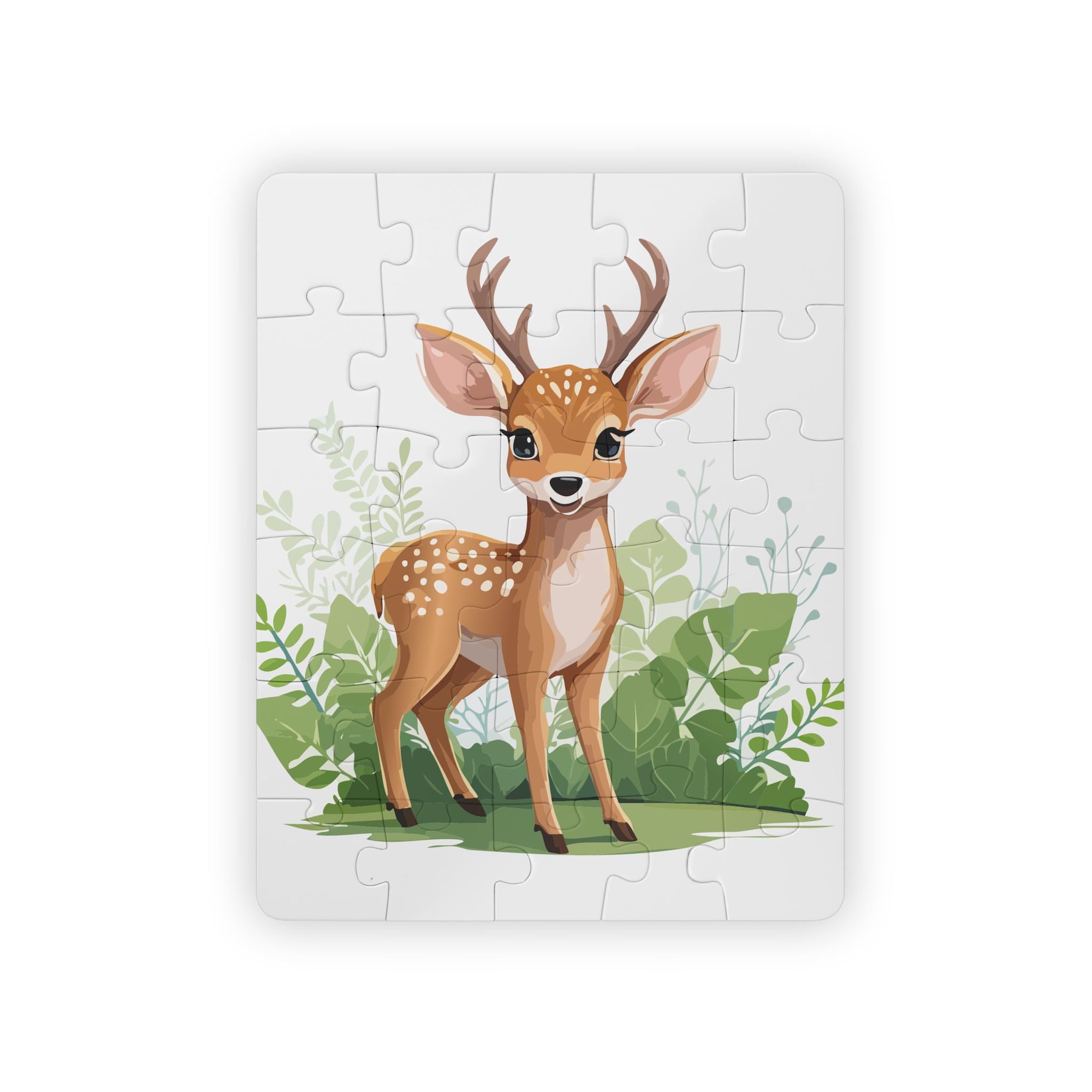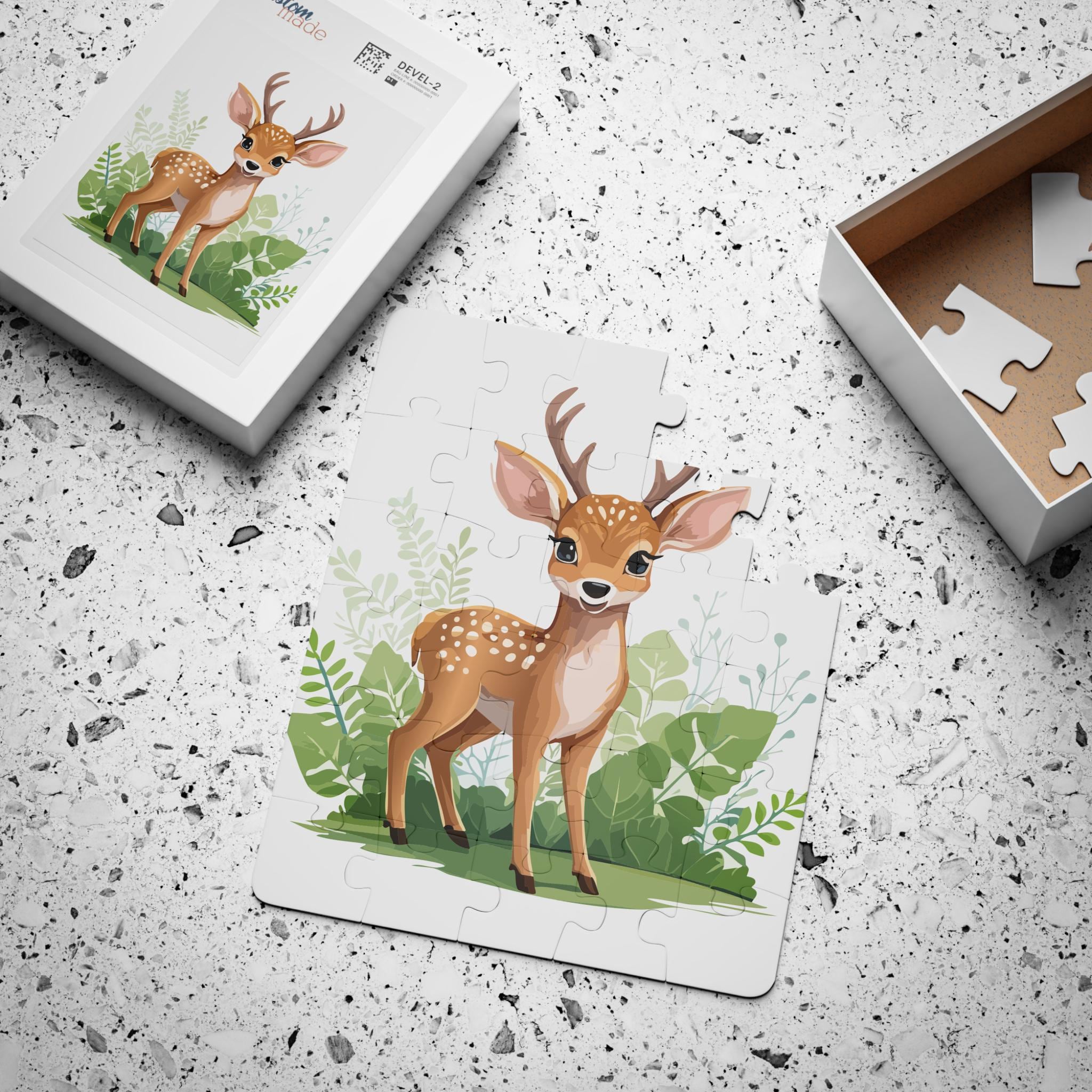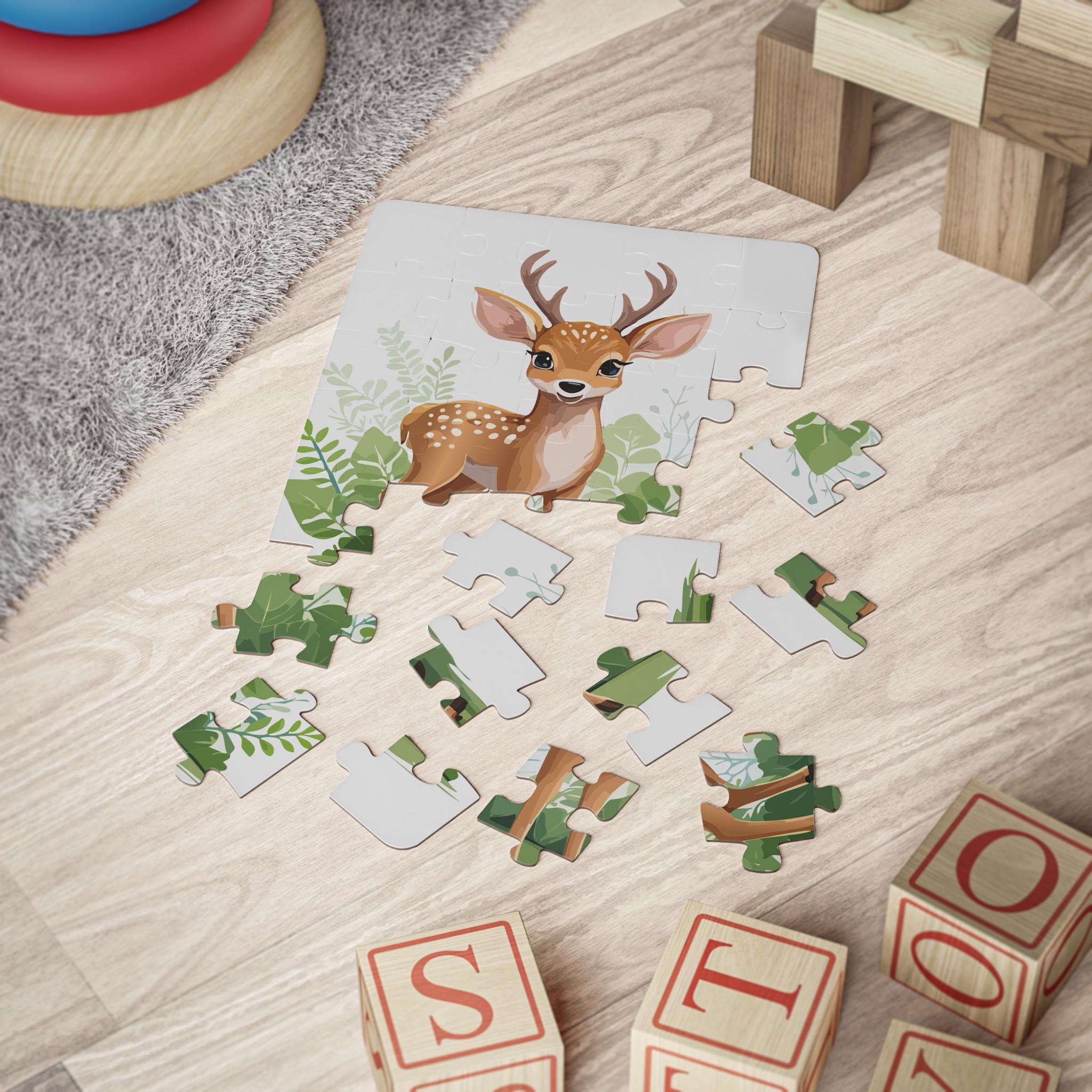 Introduce your little ones to the joy of puzzles with this engaging Kids' Puzzle, perfect for children ages 3 and up. This 30-piece puzzle features a charming design of a playful fawn surrounded by lush greenery, sparking imagination and creativity. The vibrant colors and delightful imagery invite a sense of adventure and wonder, making puzzle time a fun and educational experience. Its sturdy chipboard construction ensures durability for multiple assemblies, perfect for playdates or family game nights. Ideal for birthdays, holidays, or just as a surprise treat, this puzzle captivates young minds and provides hours of entertainment. It's a fantastic way to encourage problem-solving skills and hand-eye coordination while having fun!