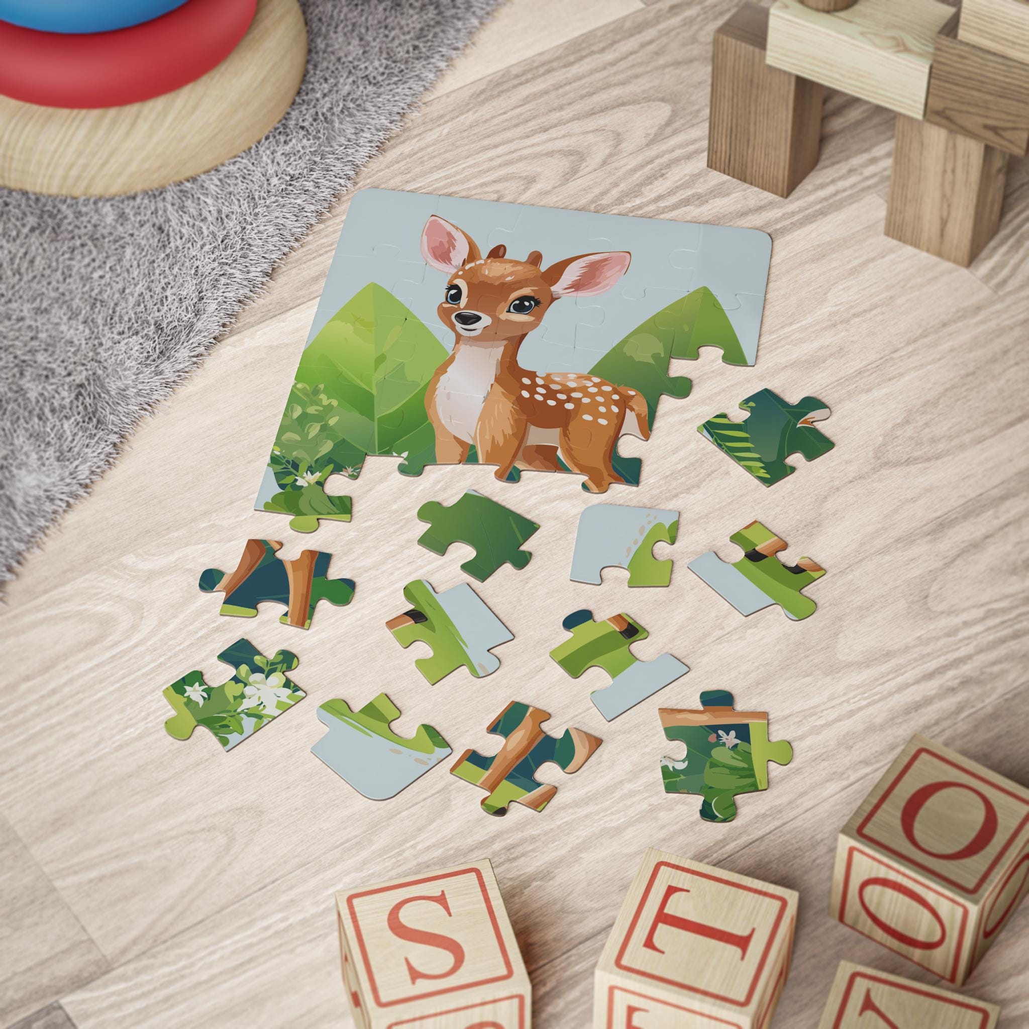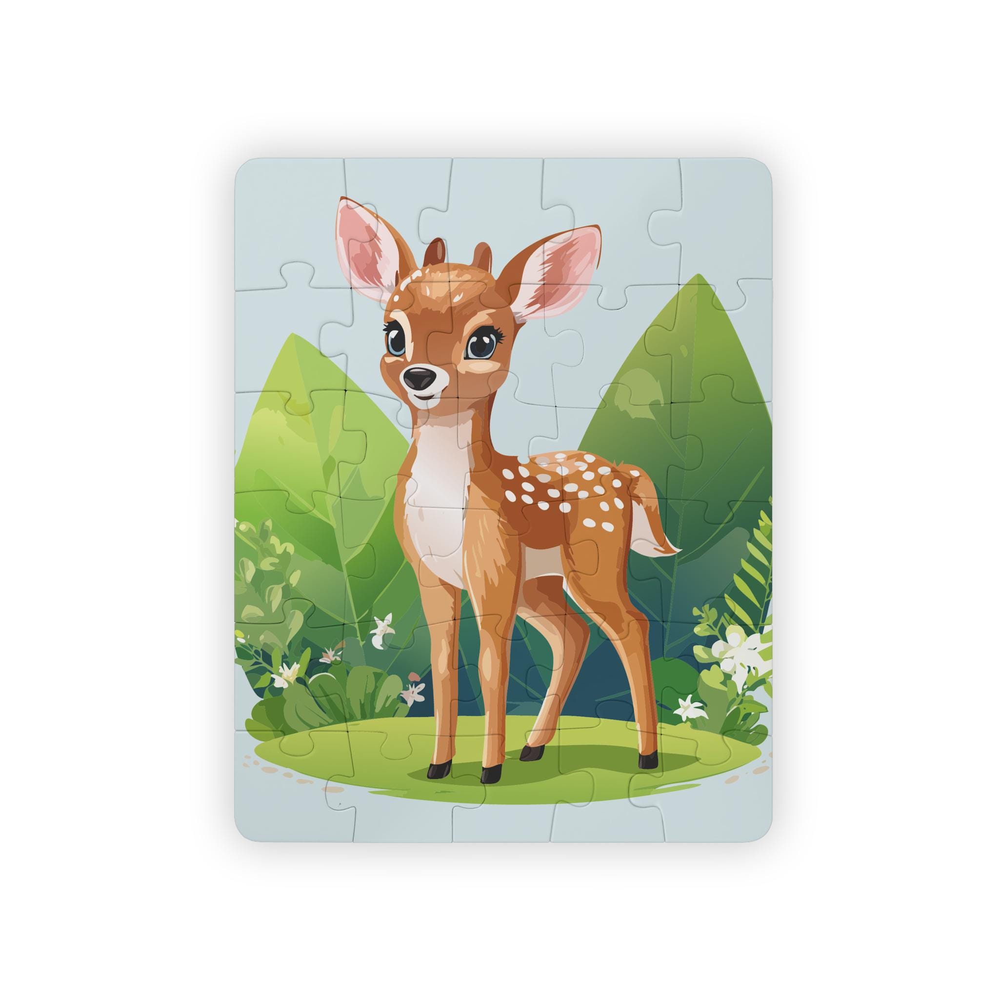 Introduce your little ones to the joy of puzzles with this engaging Kids' Puzzle, perfect for children ages 3 and up. This 30-piece puzzle features a charming design of a playful fawn surrounded by lush greenery, sparking imagination and creativity. The vibrant colors and delightful imagery invite a sense of adventure and wonder, making puzzle time a fun and educational experience. Its sturdy chipboard construction ensures durability for multiple assemblies, perfect for playdates or family game nights. Ideal for birthdays, holidays, or just as a surprise treat, this puzzle captivates young minds and provides hours of entertainment. It's a fantastic way to encourage problem-solving skills and hand-eye coordination while having fun!