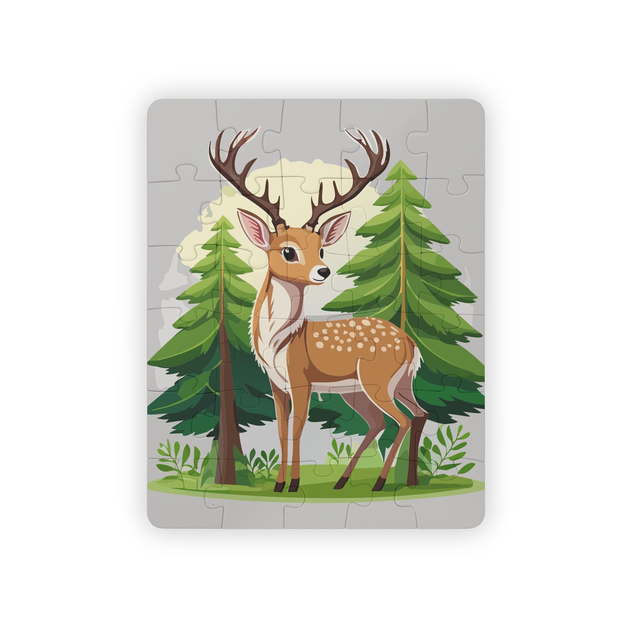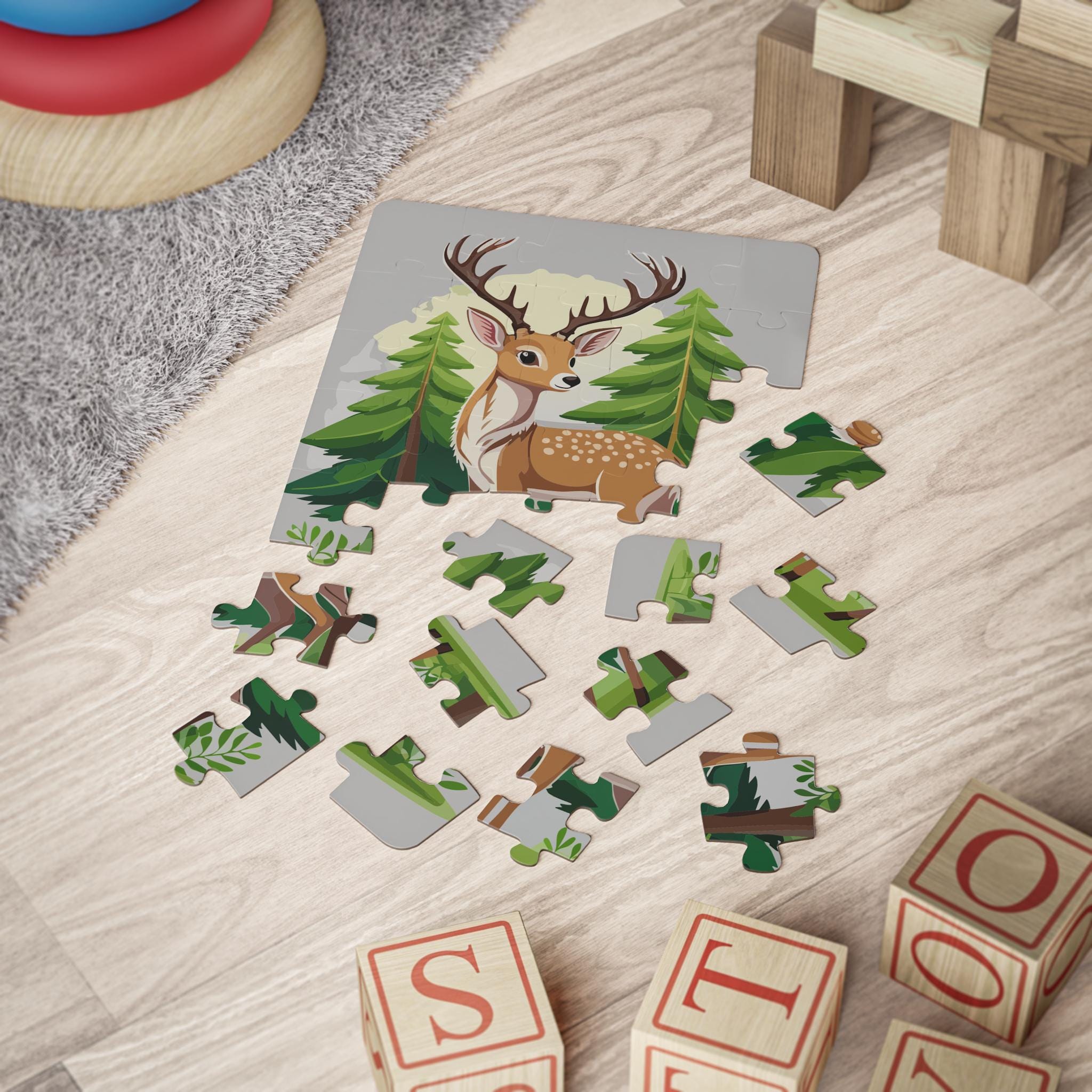 Introduce your little ones to the joy of puzzle-making with this delightful Kids' Puzzle! With 30 large, rounded pieces, it's perfect for tiny hands, encouraging both play and learning. Featuring a vibrant, cheerful design of a deer surrounded by lush trees, this puzzle brings nature indoors, making it an engaging activity for rainy days or family game nights. It's an ideal gift for birthdays, holidays, or as a fun educational tool for preschoolers. Encourage creativity and problem-solving skills while bonding with your child as they piece together this charming scene. Perfect for children who love animals or outdoor adventures!