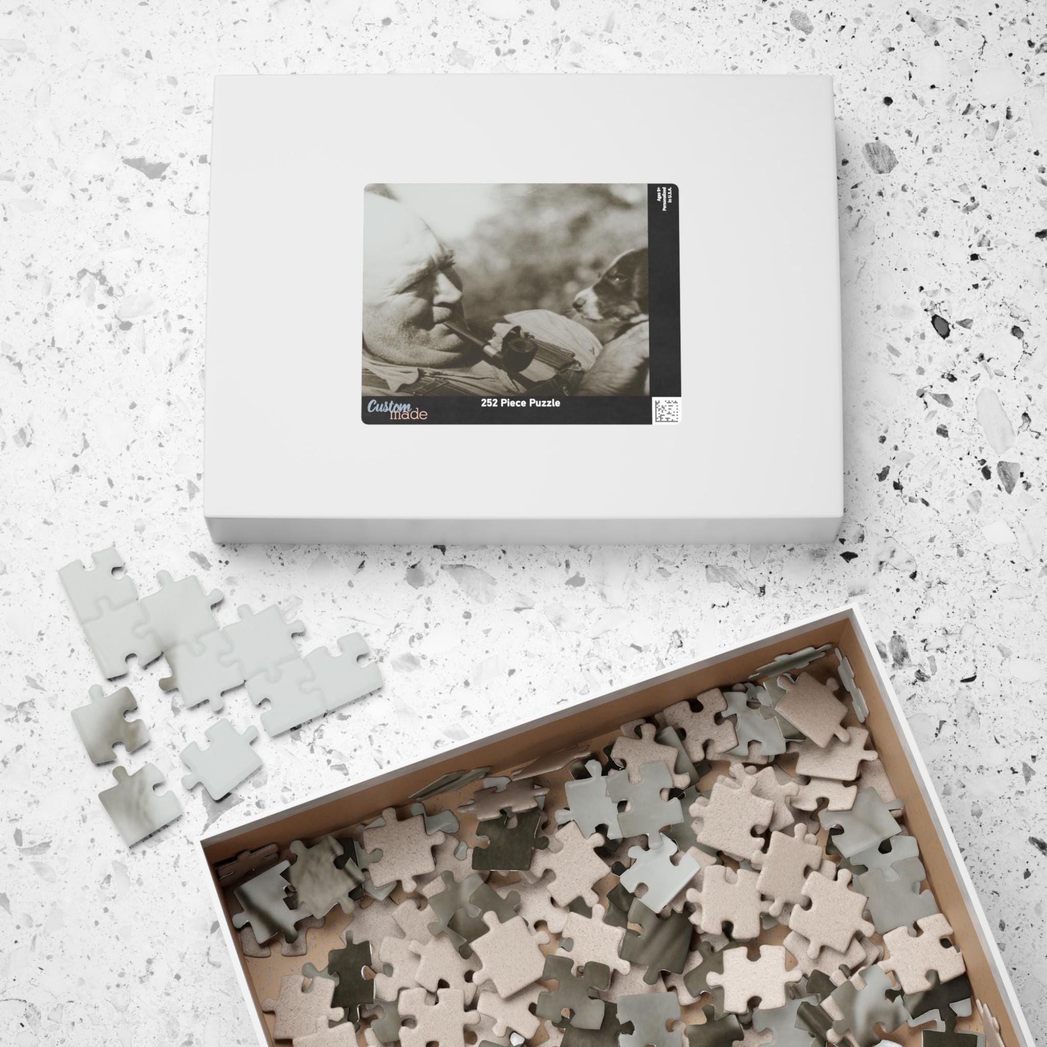 Farmer and Puppy Vintage Jigsaw Puzzle: Rustic Farmhouse Gift