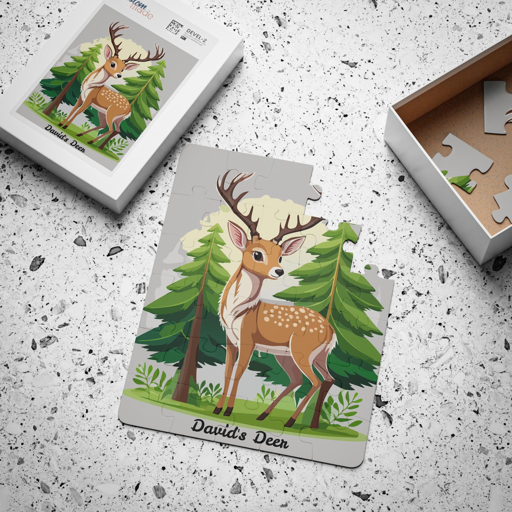 Introduce your little ones to the joy of puzzle-making with this delightful Kids' Puzzle! With 30 large, rounded pieces, it's perfect for tiny hands, encouraging both play and learning. Featuring a vibrant, cheerful design of a deer surrounded by lush trees, this puzzle brings nature indoors, making it an engaging activity for rainy days or family game nights. It's an ideal gift for birthdays, holidays, or as a fun educational tool for preschoolers. Encourage creativity and problem-solving skills while bonding with your child as they piece together this charming scene. Perfect for children who love animals or outdoor adventures!
