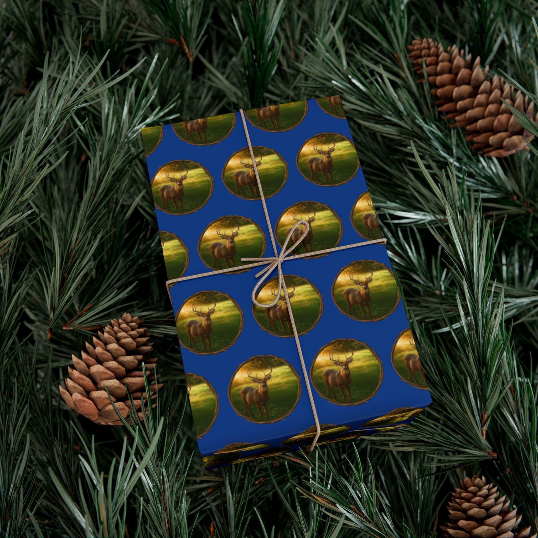 This deer standing in sunlight surrounded by a circle of twigs wrapping paper exudes a rustic and nature-inspired vibe. Perfect for adding a touch of the outdoors to your gift-giving occasions. Ideal for nature lovers, outdoor enthusiasts, and those who appreciate wildlife. Relevant for holidays like Christmas, birthdays, and special occasions.