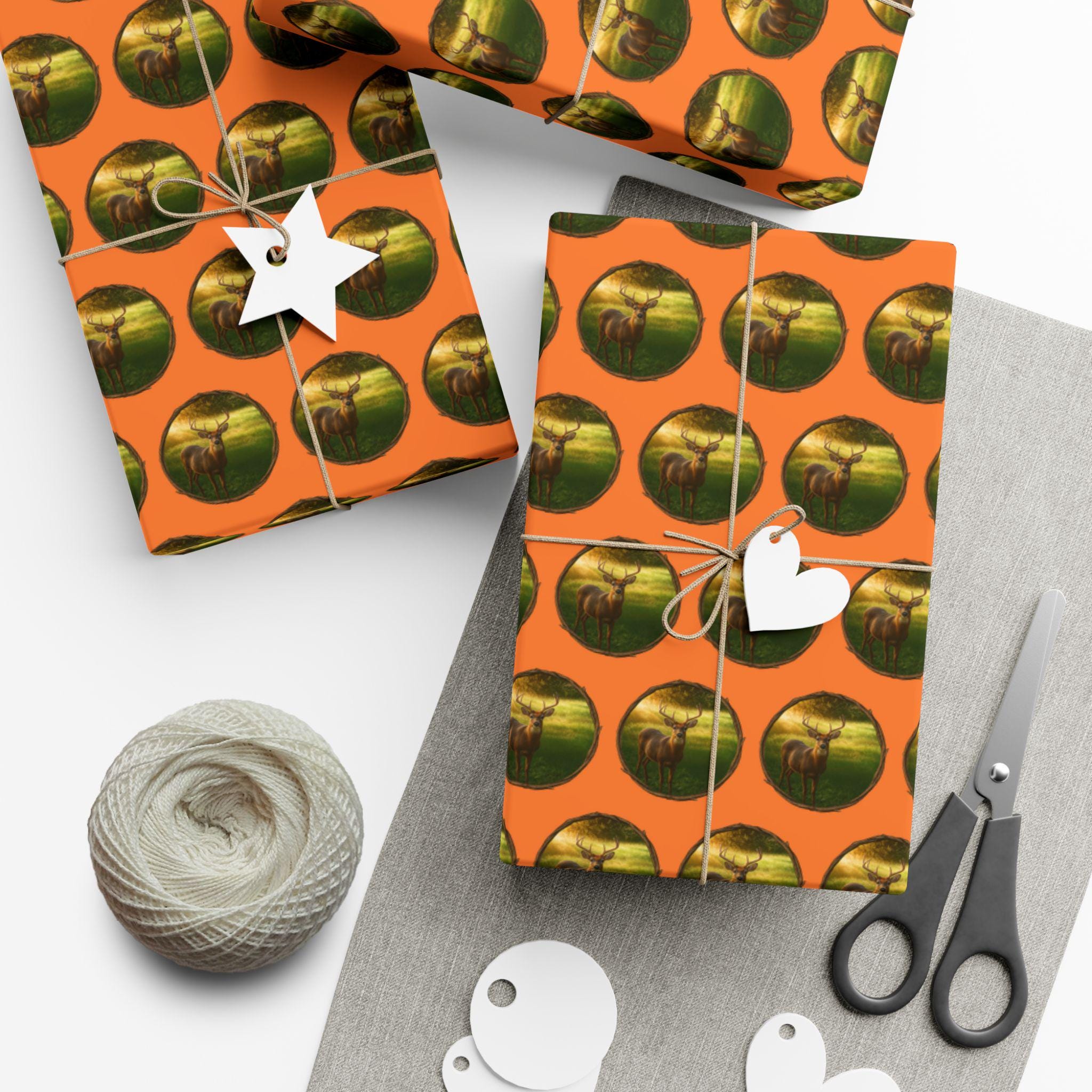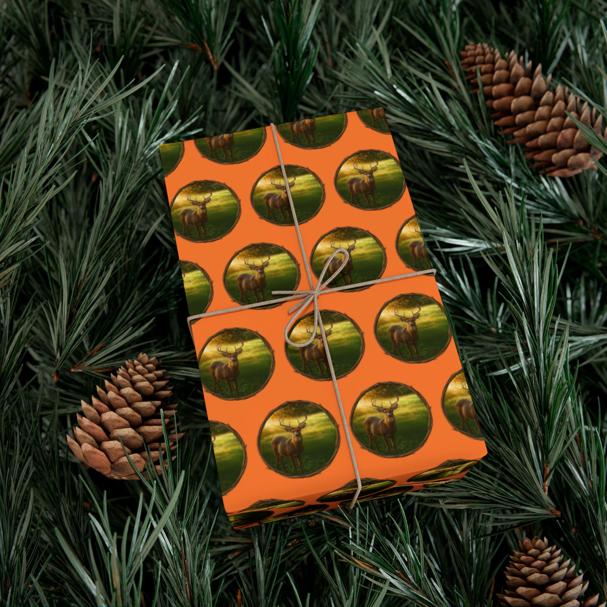 Wrapping Paper Deer in Morning Sunlight Rustic Woodland Gift Wrap Forest Wildlife Design Orange Background