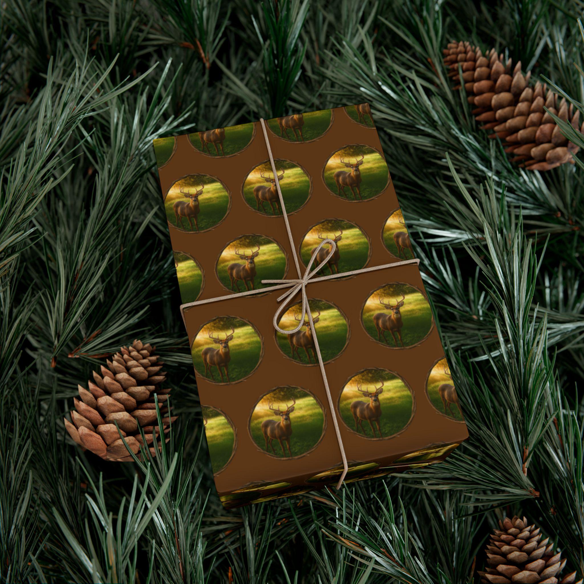 Wrapping Paper Deer in Morning Sunlight Rustic Woodland Gift Wrap Forest Wildlife Design Brown Background