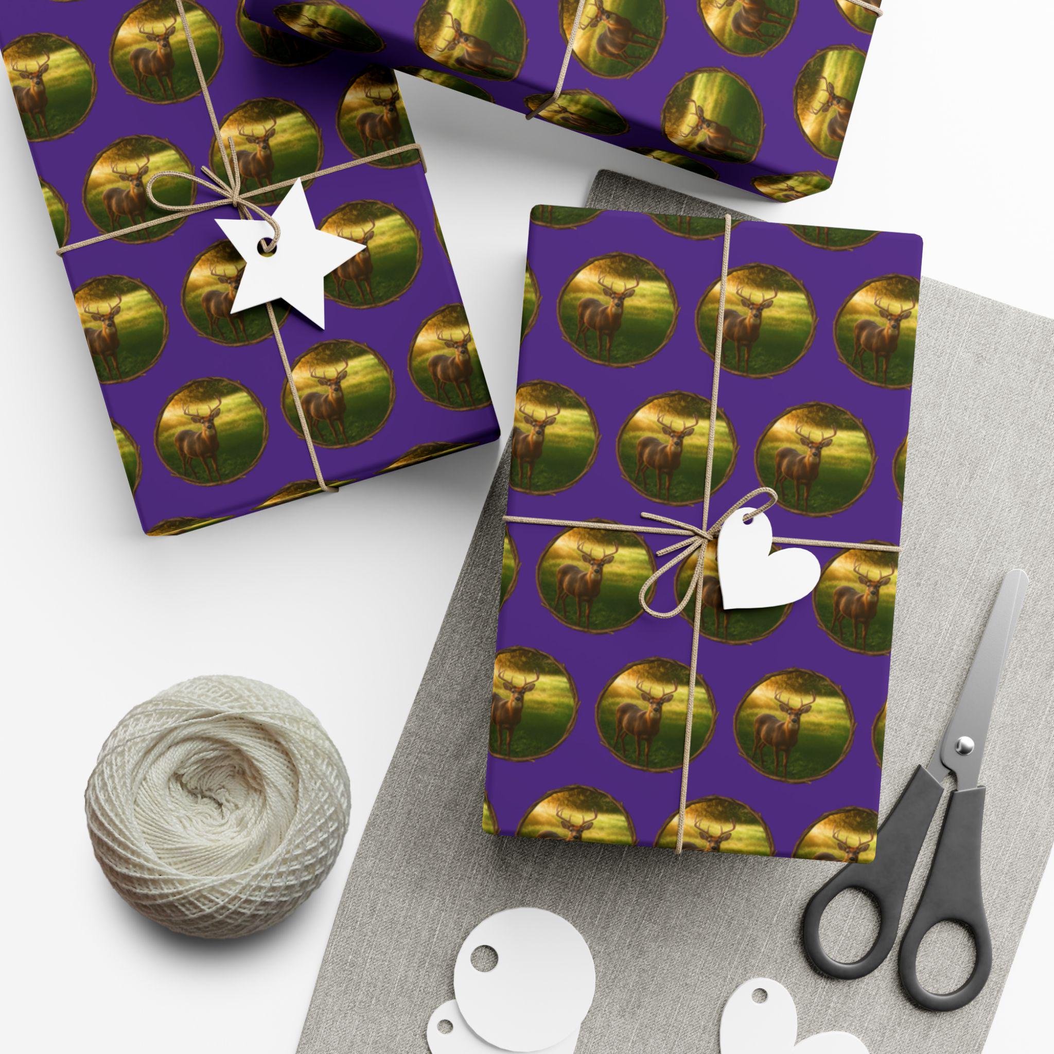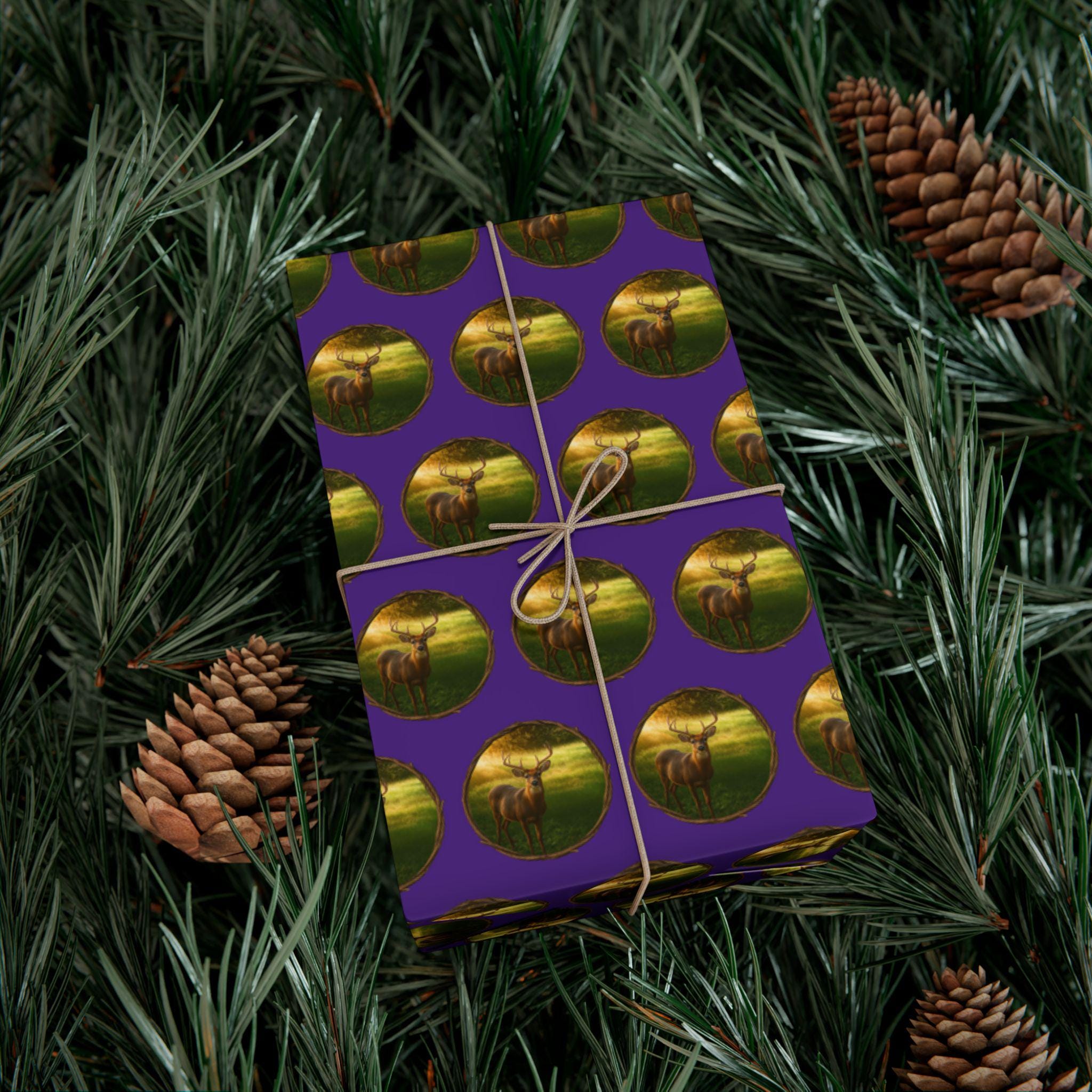Wrapping Paper Deer in Morning Sunlight Rustic Woodland Gift Wrap Forest Wildlife Design Purple Background