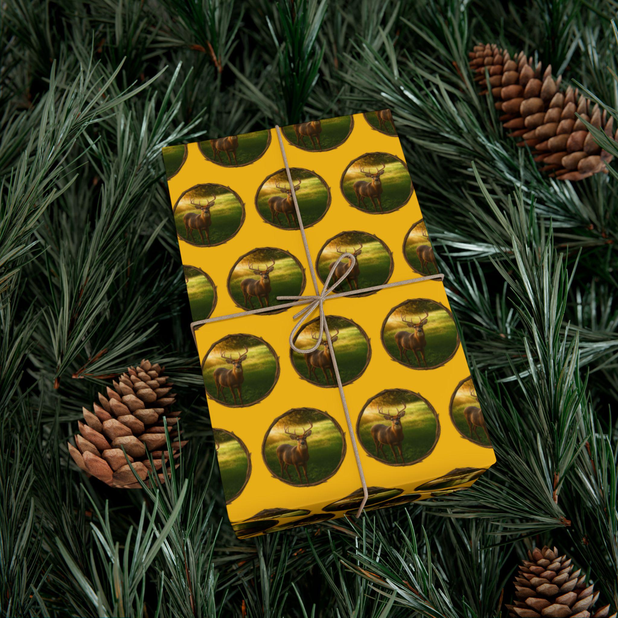 Descriptive Phrases - deer wrapping paper - woodland gift wrap - wildlife print gift wrap - rustic cabin wrapping paper - buck in sunlight paper roll - nature lover gift wrap - forest theme gift wrap - rustic deer pattern paper - outdoor hunting decor - Rustic wrapping paper featuring a deer standing in morning sunlight inside a circle of branches. - Forest-themed wildlife design by Wildlife By Richard USA made from a photo of a deer.