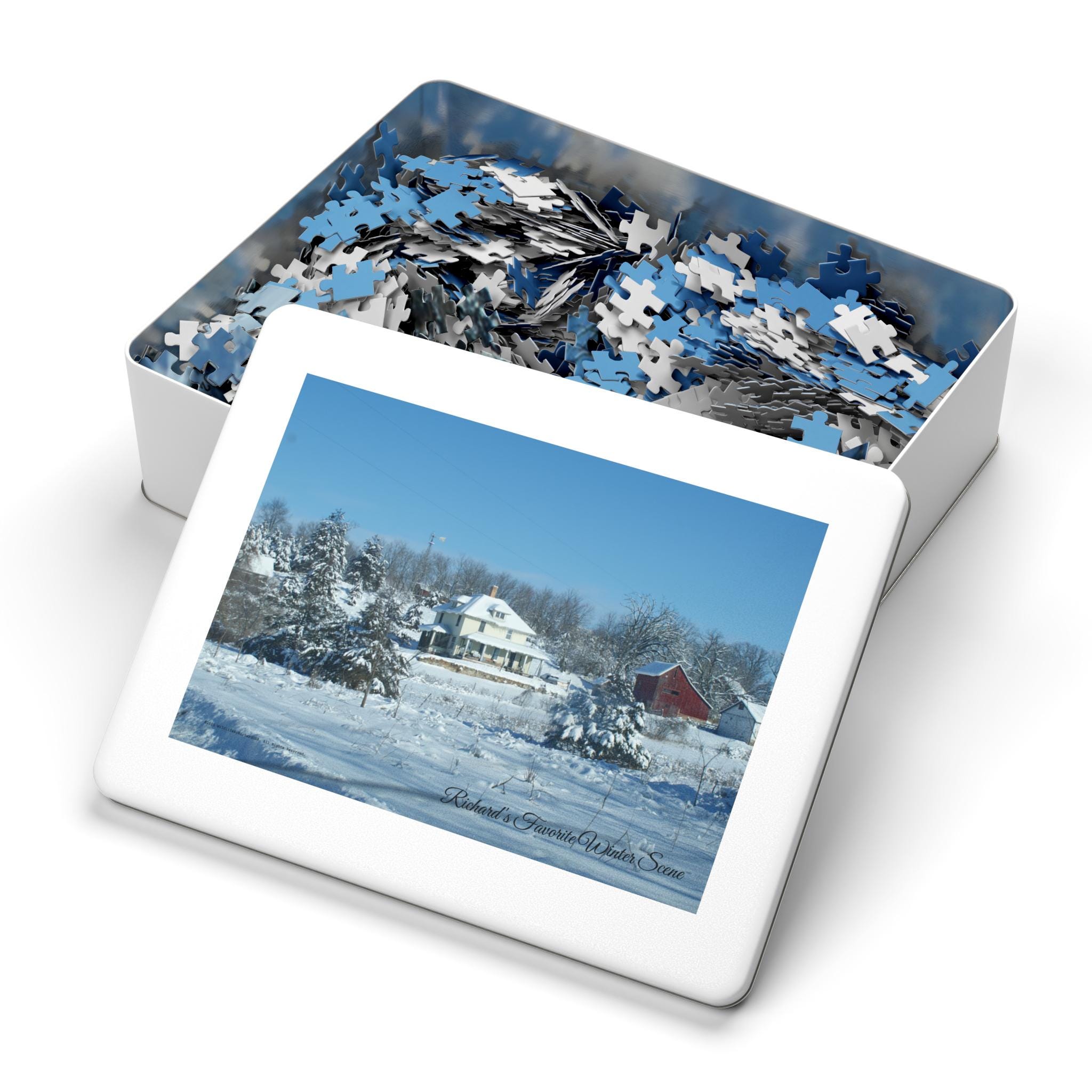 Product features - Vibrant colors achieved through advanced printing techniques. - Available in various piece counts: 1000, or 2000 pieces. - The puzzle box features your design for easy assembly and eye-catching presentation. - Made with pre-die-cut chipboard for perfect fit and durability. - Comes in a beautiful white metal tin box with the finished image on the cover.