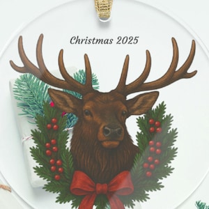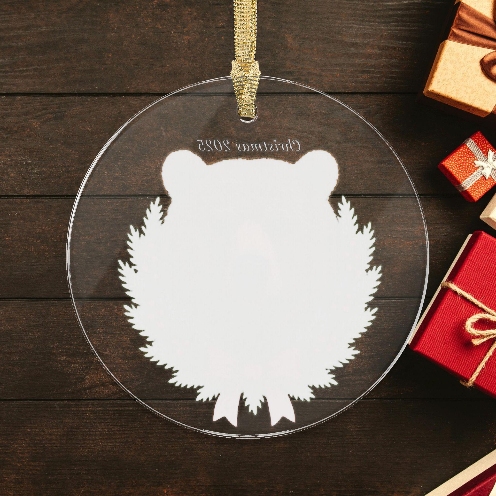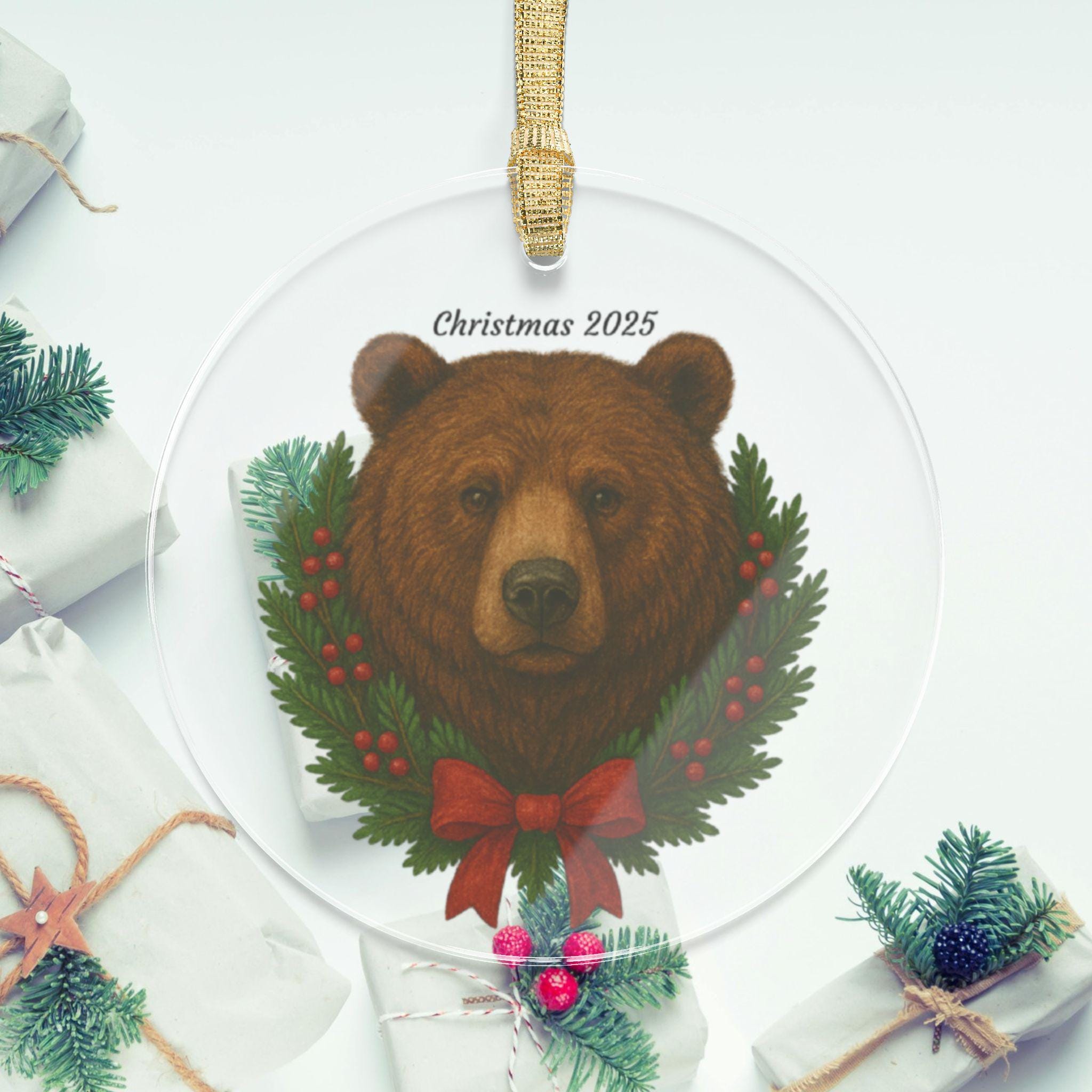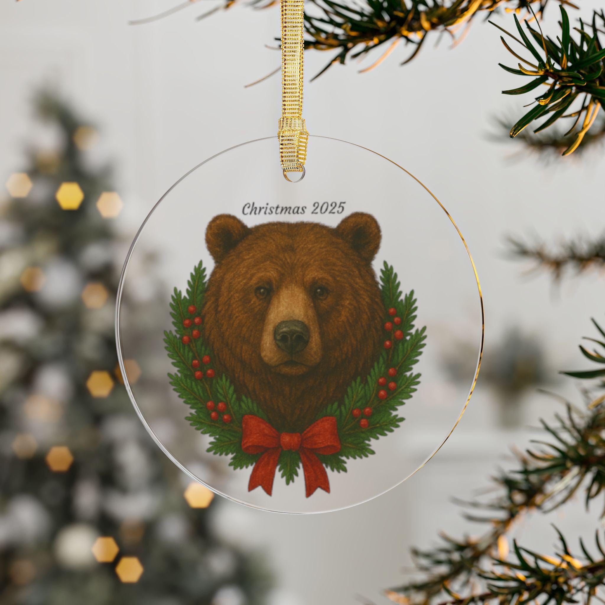 Grizzly Bear Wreath Acrylic Ornament, Christmas Tree Decor, Holiday Gift, Rustic Home Decor, Winter Wonderland Decoration