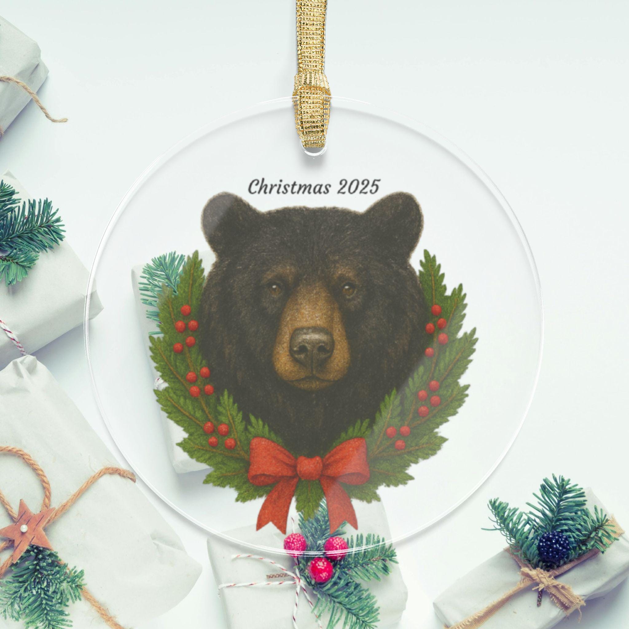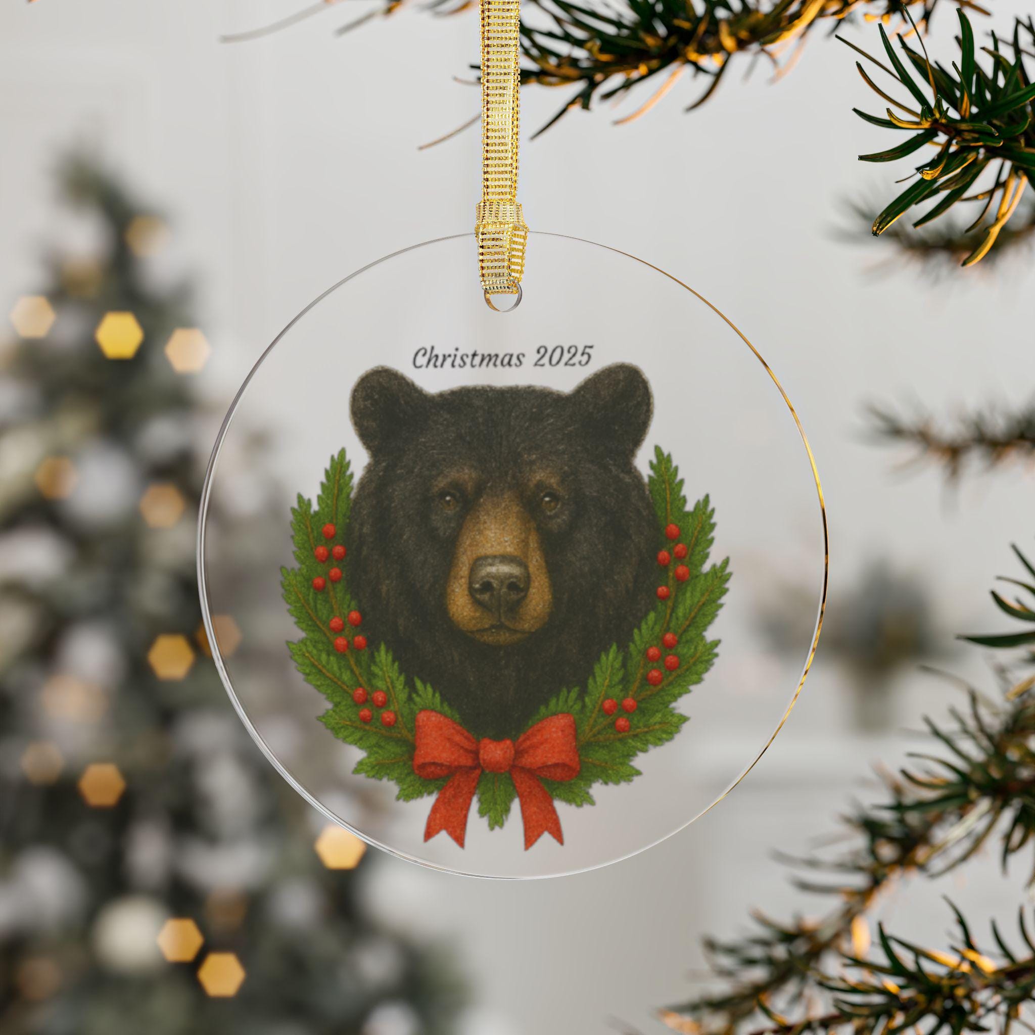 Black Bear Wreath Acrylic Ornament, Christmas Tree Decor, Holiday Gift, Rustic Home Decor, Winter Wonderland Decoration