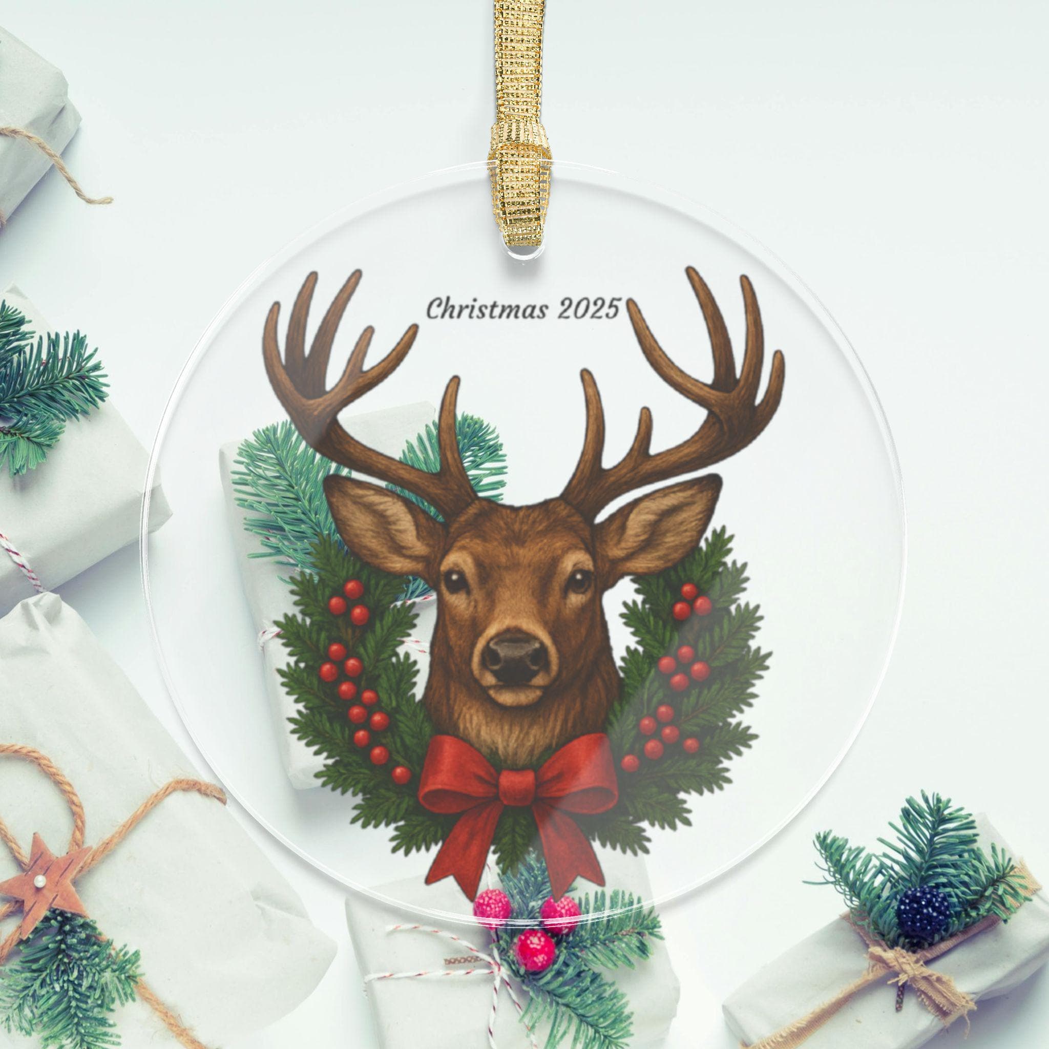 Deer Buck Wreath Acrylic Ornament, Christmas Tree Decor, Holiday Gift, Rustic Home Decor, Winter Wonderland Decoration