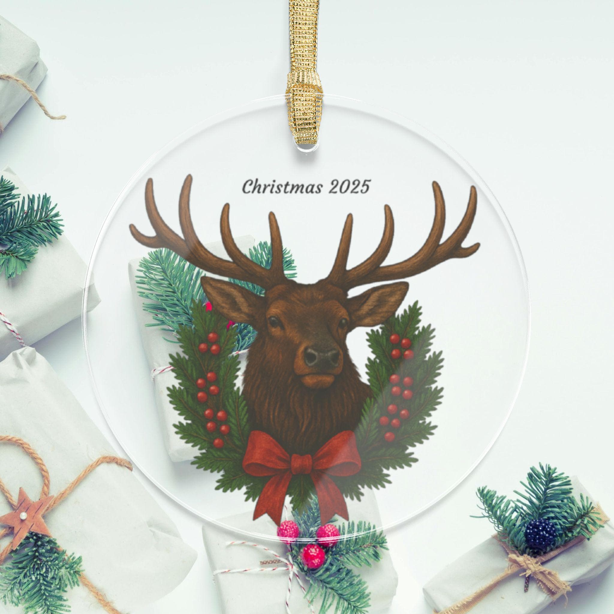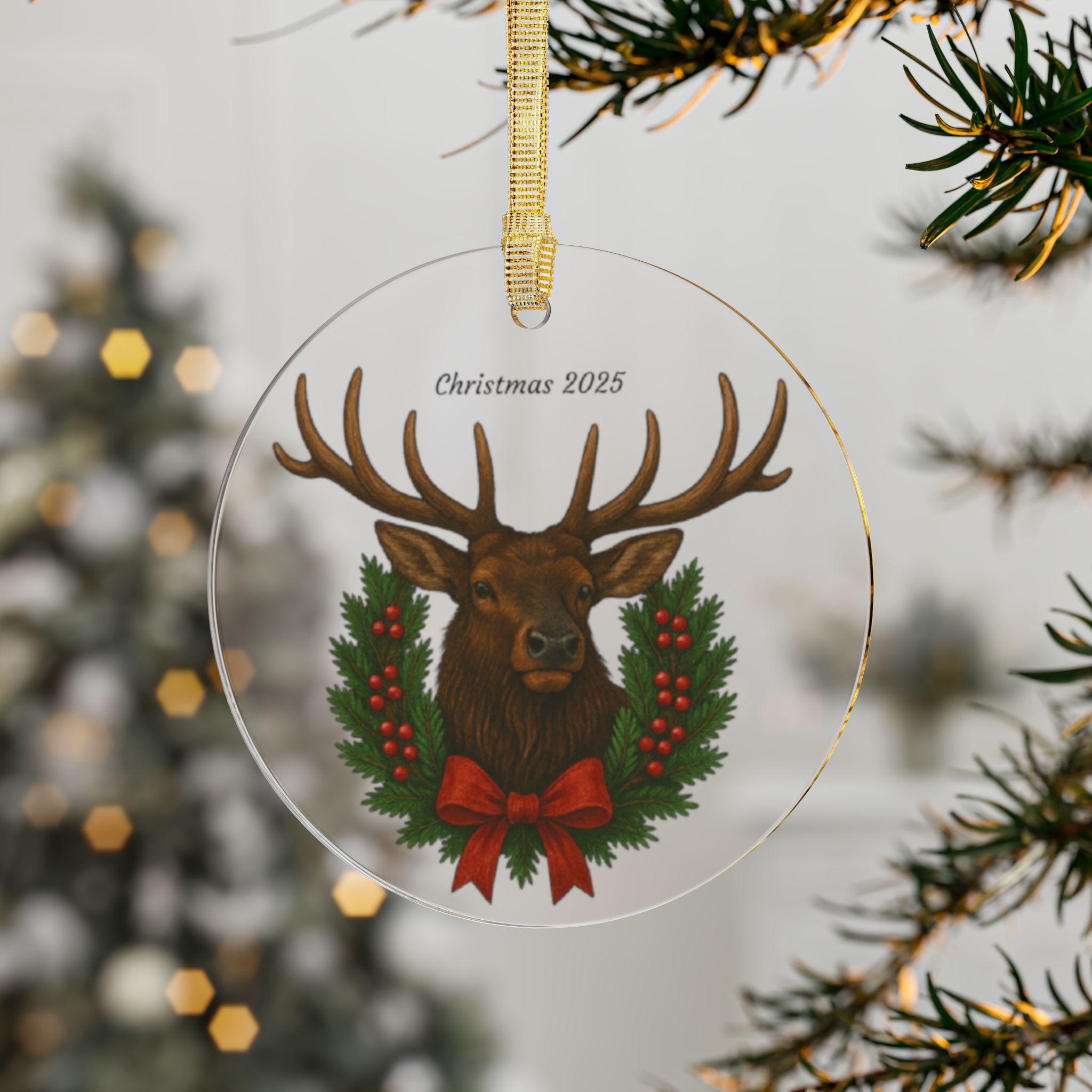 Elk Stag Wreath Acrylic Ornament, Christmas Tree Decor, Holiday Gift, Rustic Home Decor, Winter Wonderland Decoration