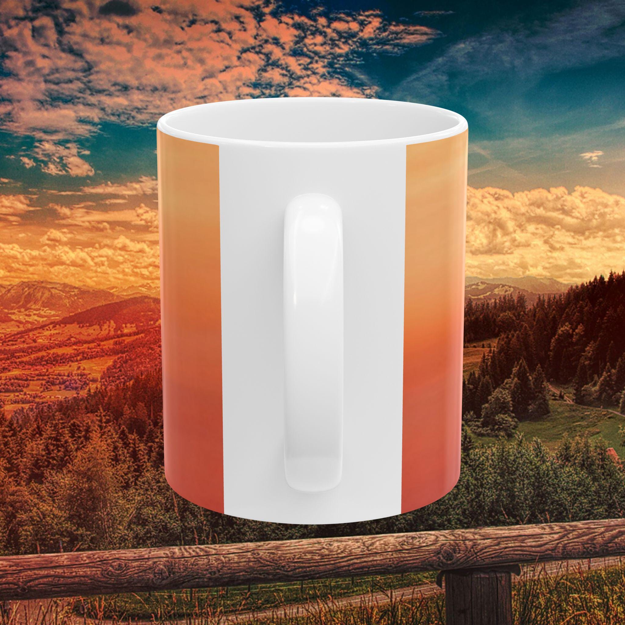 ☕ Product Features: 11 oz white ceramic mug Stunning full-wrap panoramic sunrise photo Glossy finish for vibrant print and easy cleaning Microwave & dishwasher safe Personalized text option (optional – front or back)
