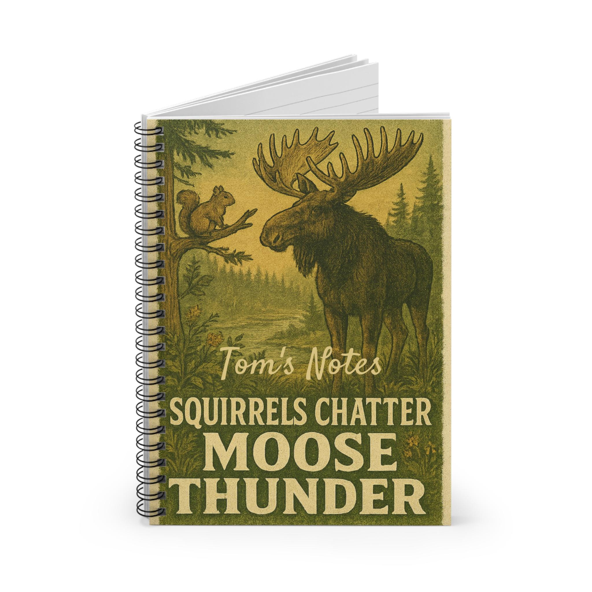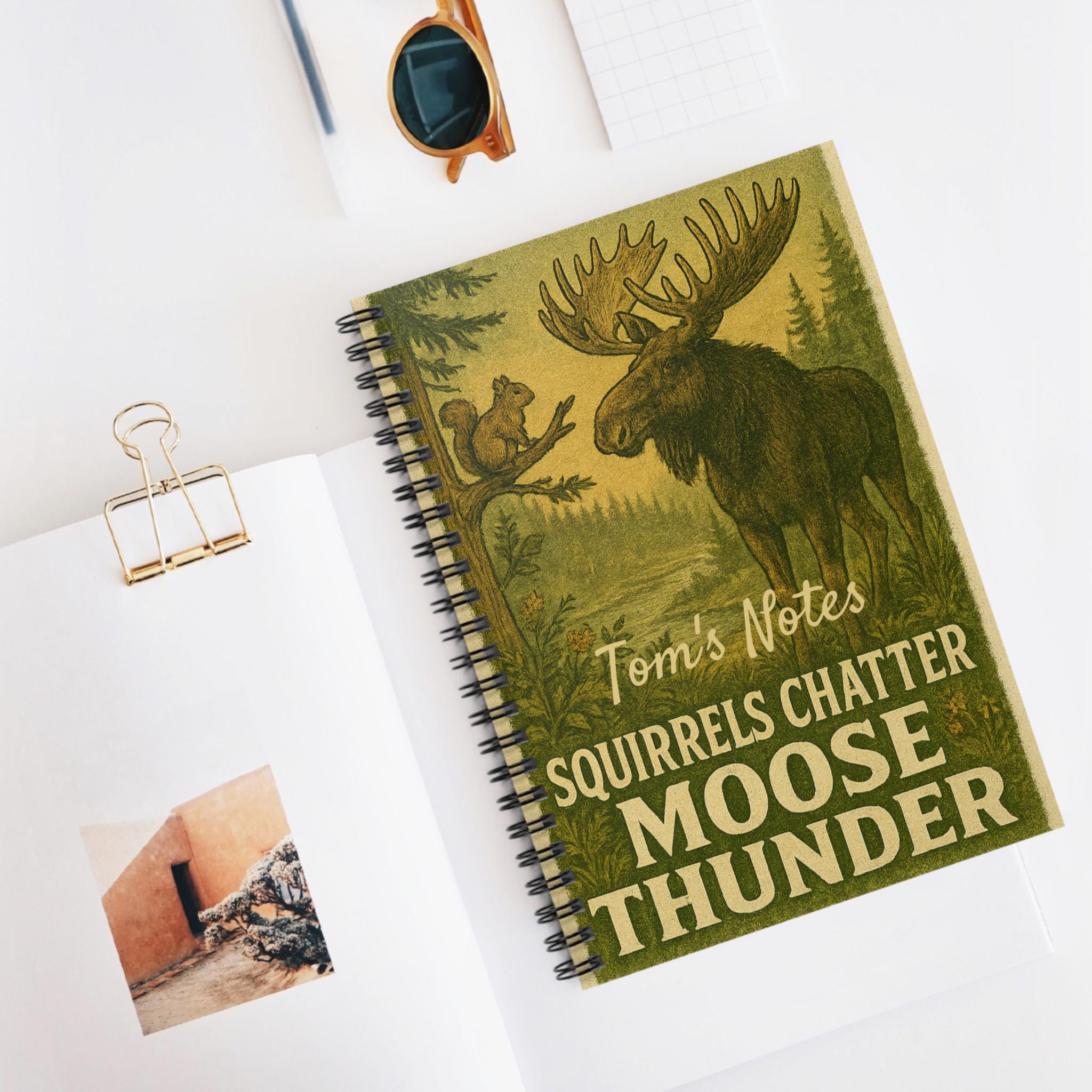 Rustic Moose Spiral Notebook, Personalized Journal for Nature Lovers, Back to School Writing Diary, Memory Keeper, Wildlife Enthusiast Gift. This notebook gives a cozy, cabin-in-the-woods vibe and is perfect for jotting down thoughts, notes, and memories. Ideal for students, nature enthusiasts, and wildlife lovers. Relevant for back-to-school, birthdays, and nature-themed occasions.