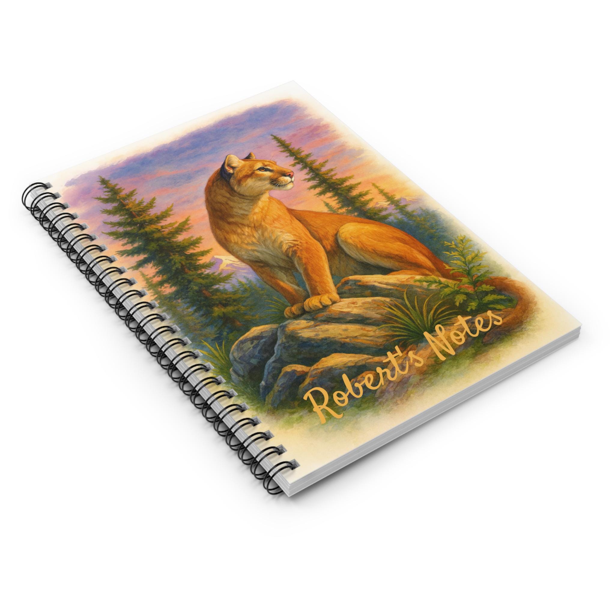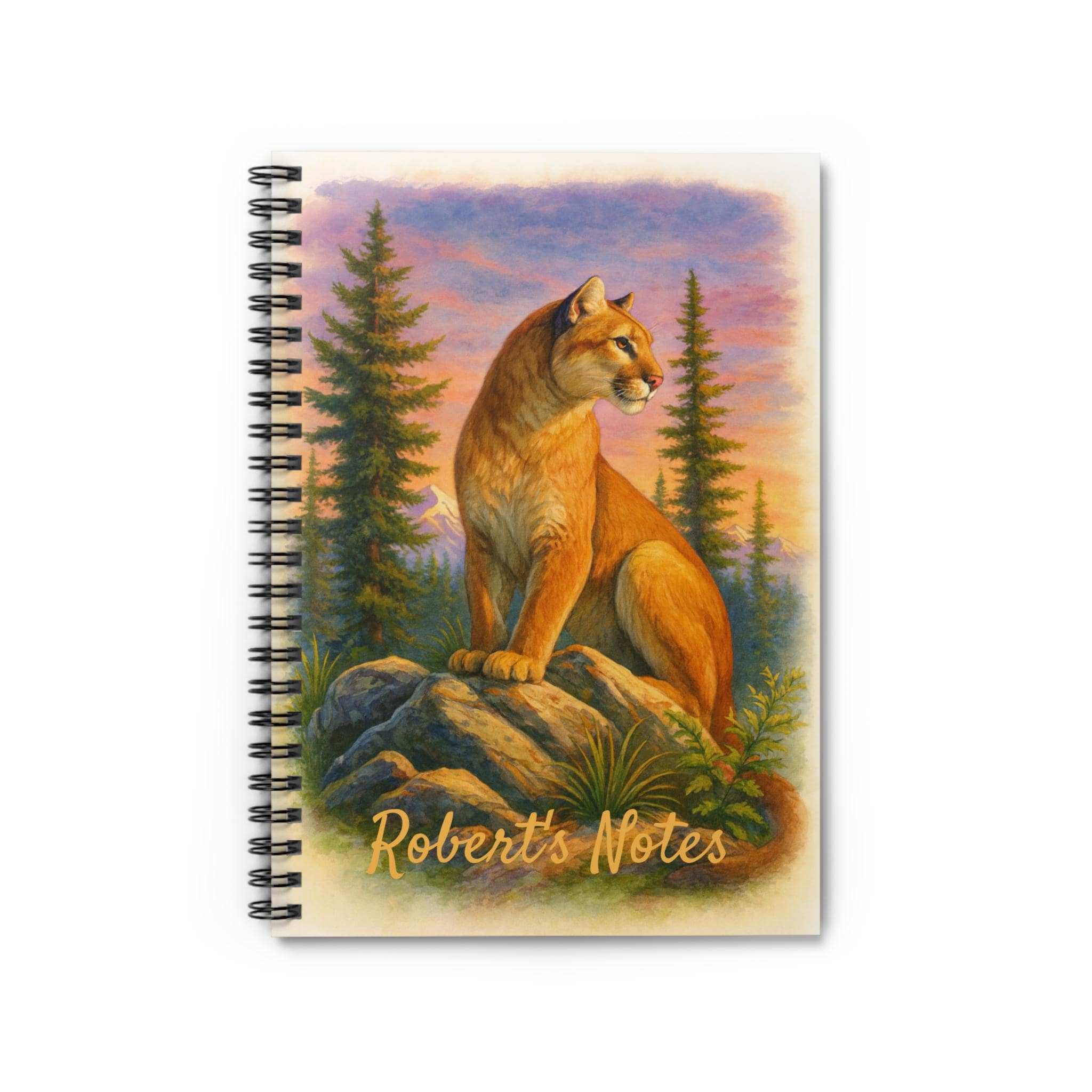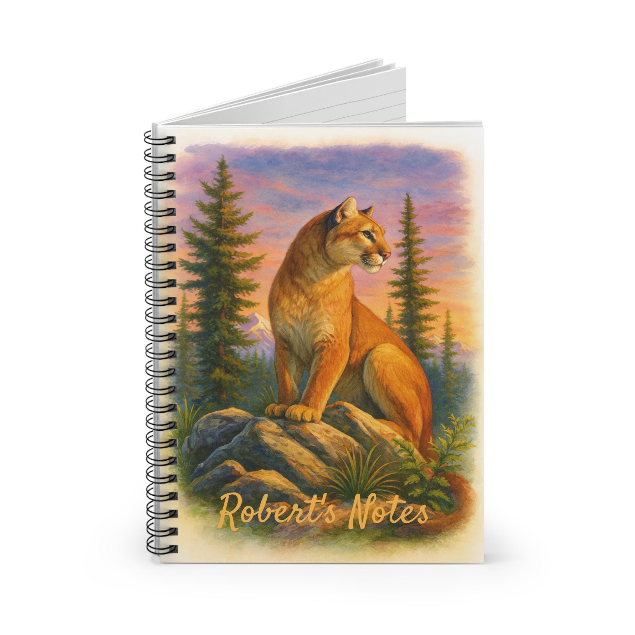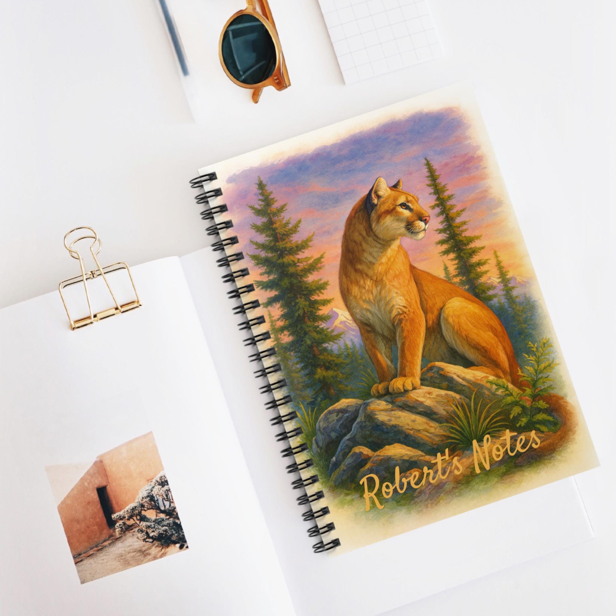 This Mountain Lion Spiral Notebook is a personalized journal perfect for nature lovers, wildlife enthusiasts, or those looking for a unique gift. With ruled lines and a document pocket for added storage, this notebook is ideal for back to school, writing diaries, or keeping memories.