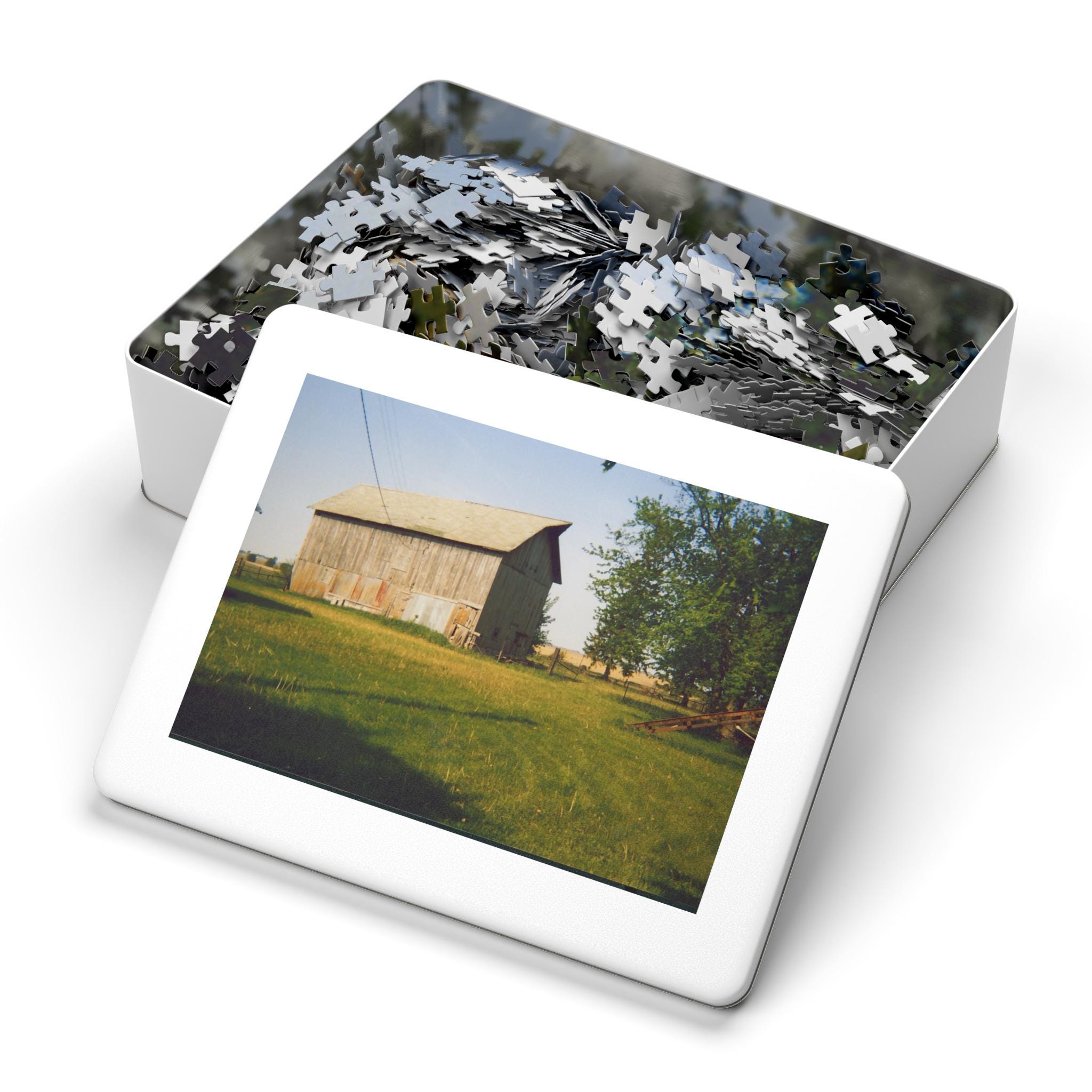 Sun-warmed wood, flaking red paint, and late-afternoon light—this puzzle invites you to slow down and walk into a rural memory. Each piece snaps into place like a step across a creaky porch, revealing an old barn framed by tall grass and a wide sky. It’s the kind of scene that brings hands together around a table, quiet conversation, and the small satisfaction of finishing the last stubborn piece. The tin keeps the image safe and travel-ready, so you can take that afternoon calm to a cabin, a family gathering, or a rainy weekend at home.